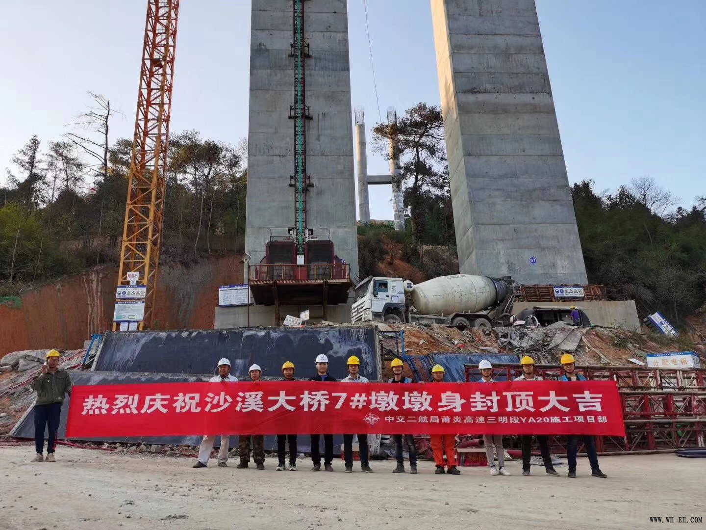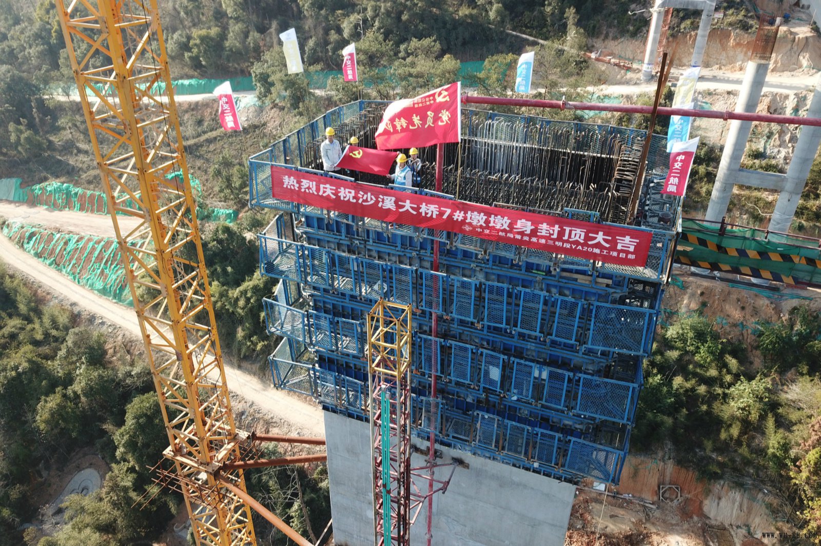 1月8日下午,沙溪大桥首个薄壁空心墩顺利封顶。