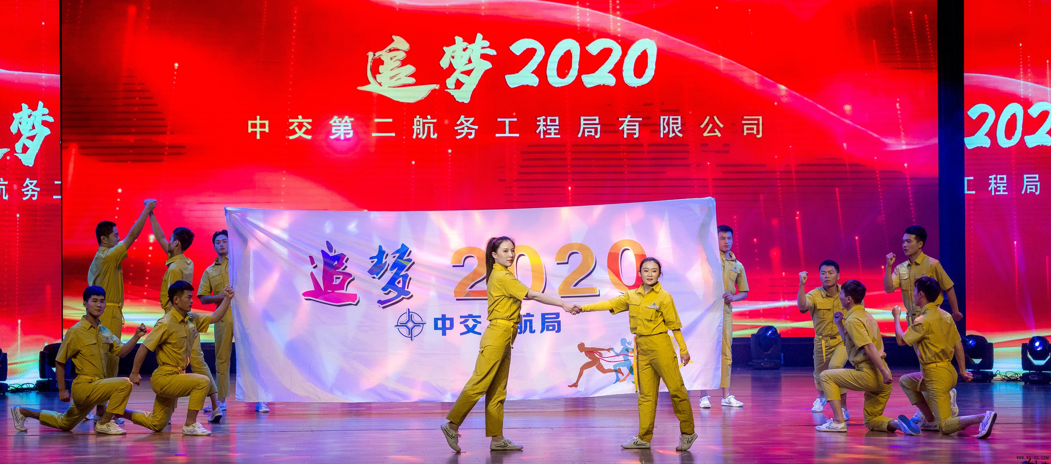 联欢会上,随着音乐响起,背景屏幕上播放出浦仪大桥和南京五桥项目一年来的工程进度形象及重大节点剪辑的MV,女生开始上场独舞,随后两名旗手拉着写有“追梦2020”字样的旗子奔跑上场,其他演员也摆好动作陆续登场。《追梦》既有女生独舞展现柔美,也有男生群舞展现力量,托举、侧翻等动作更是赢得台下一片叫好。《追梦》这支刚柔并济的舞蹈展现了二航人拼搏奉献的精神和追求梦想的坚定意志,参演人员们通过舞蹈向台下观众传达出二航局浦仪公路项目部以及南京五桥项目部向着2020奋力前行的决心和美好期望。