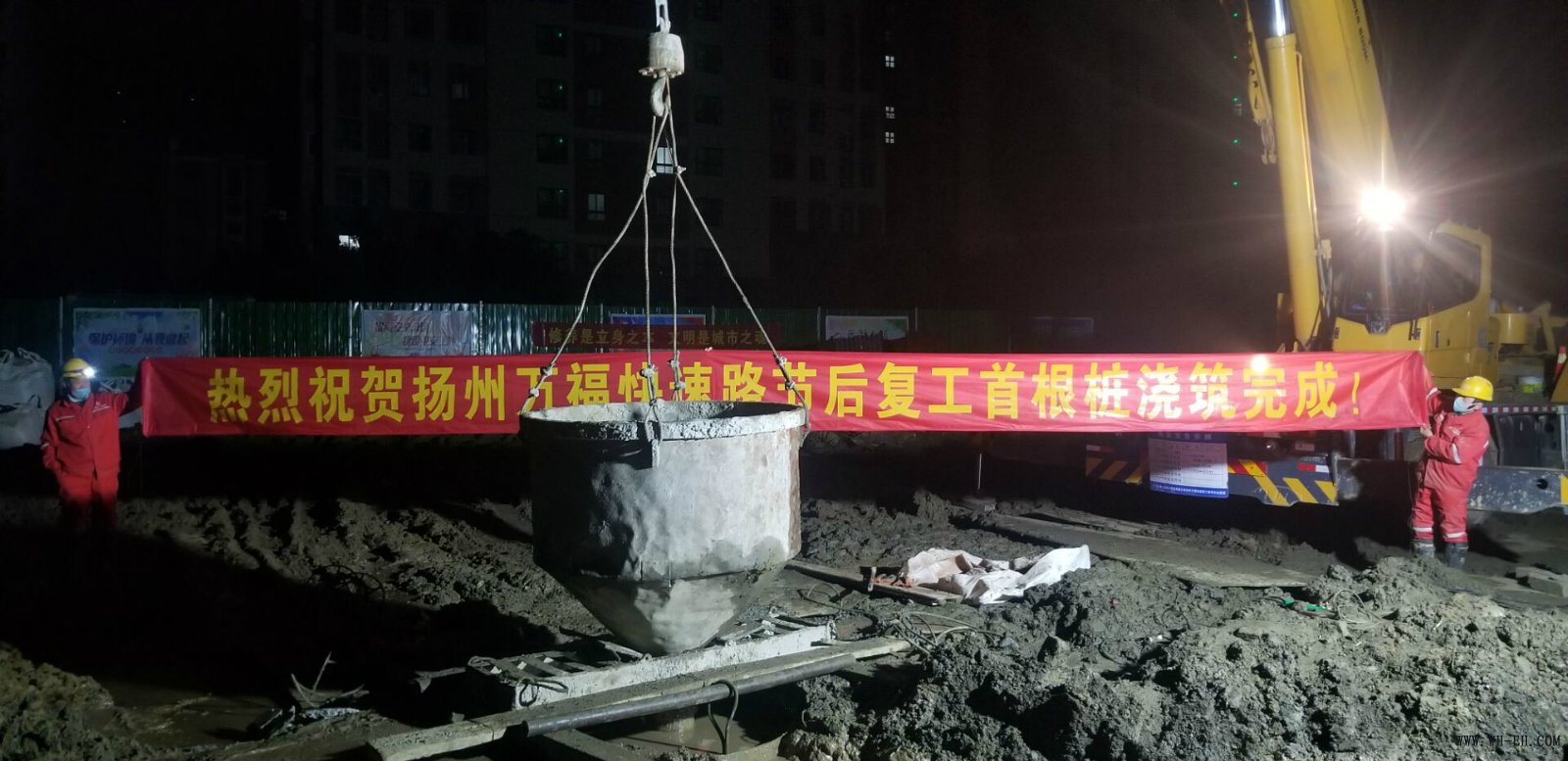 2月20日早晨5时,扬州万福快速路顺利完成复工后首根桩的浇筑工作。