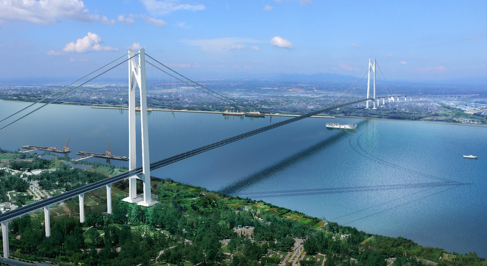 该项目全长约13.5公里,主线设计时速80公里,双向6车道,按城市快速路标准建设。主桥设计采用主跨1760米的双塔悬索桥结构,是目前中国第一、世界第二大跨度悬索桥。公司负责施工的南锚碇采用圆形地连墙基础,外径65米,开挖深度达到57米,为同截面类型基础开挖深度之最。