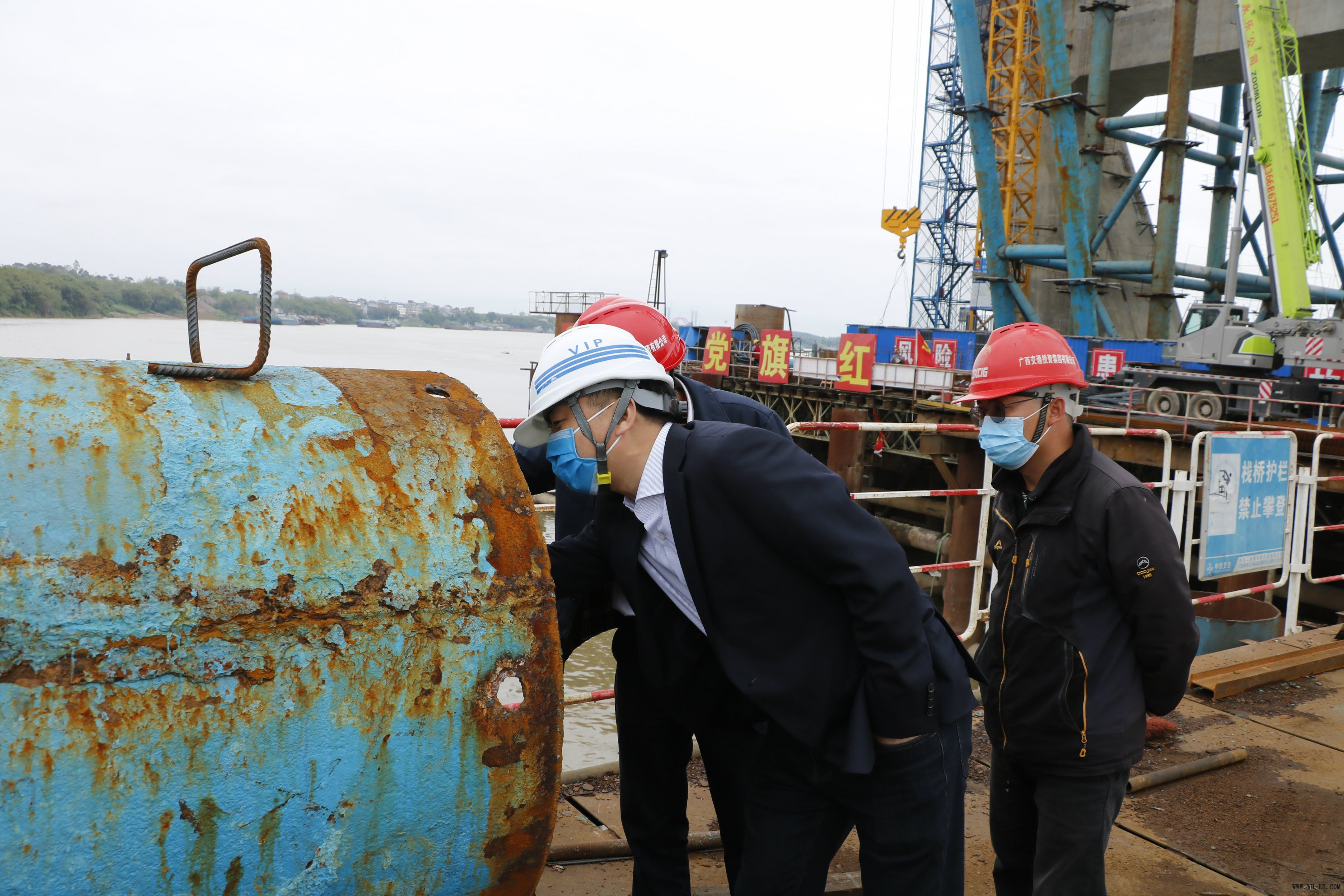 赵成立一行首先到相思洲大桥施工现场实地考察了大桥建设进度情况,并对疫情防控期间项目复工情况进行了全面检查。随后在汇报会上,项目负责人就相思洲大桥年底建成通车方案的可行性进行了详细汇报。通车方案对大桥施工后续施工计划进行了分解编排,按照各工序衔接所需时间以“小时”为单位进行重新梳理和调整,并对保障后续施工需要投入的人员、机械、设备的可靠性进行了细化安排。经过与会专家及技术人员深入讨论、研究,在确保质量、安全的前提下,明确了相思洲大桥主塔封顶和主桥中跨合龙的重大时间节点,确保完成通车目标。