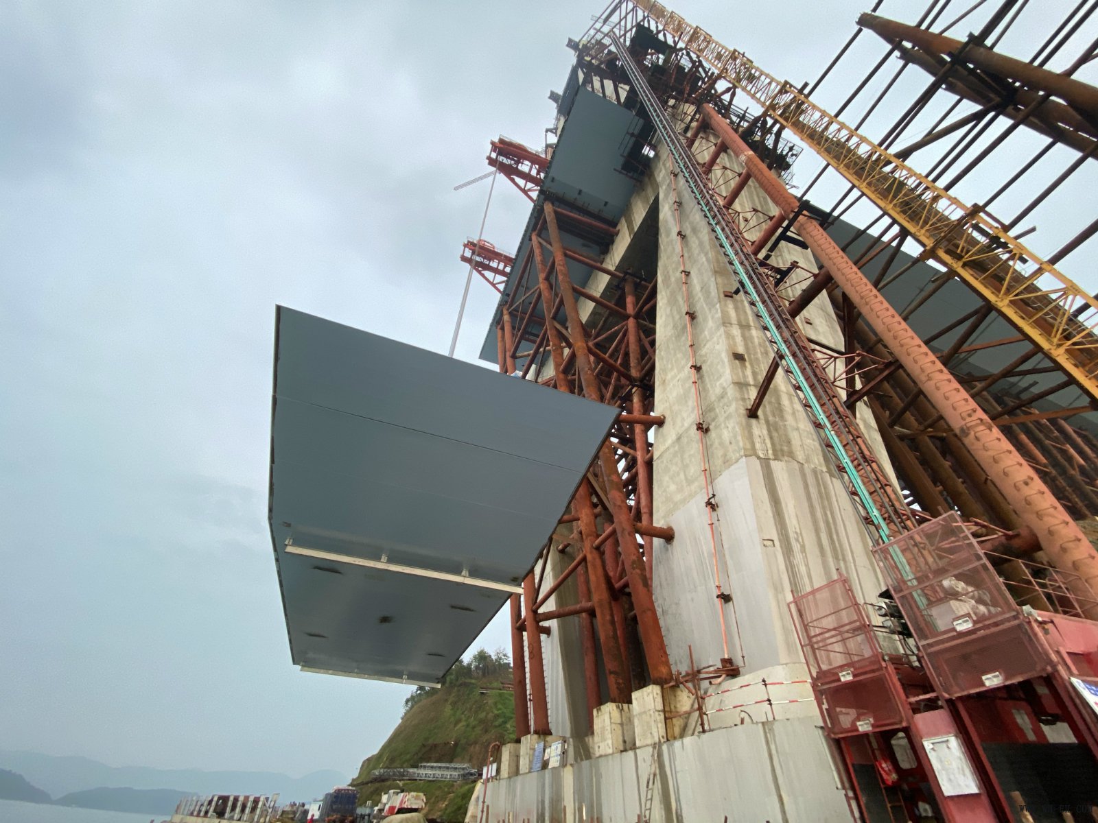 5月2日,由公司承建的福建省沙埕湾跨海大桥主桥跨中首段钢箱梁顺利吊装。预计今年8月底实现全桥合龙。