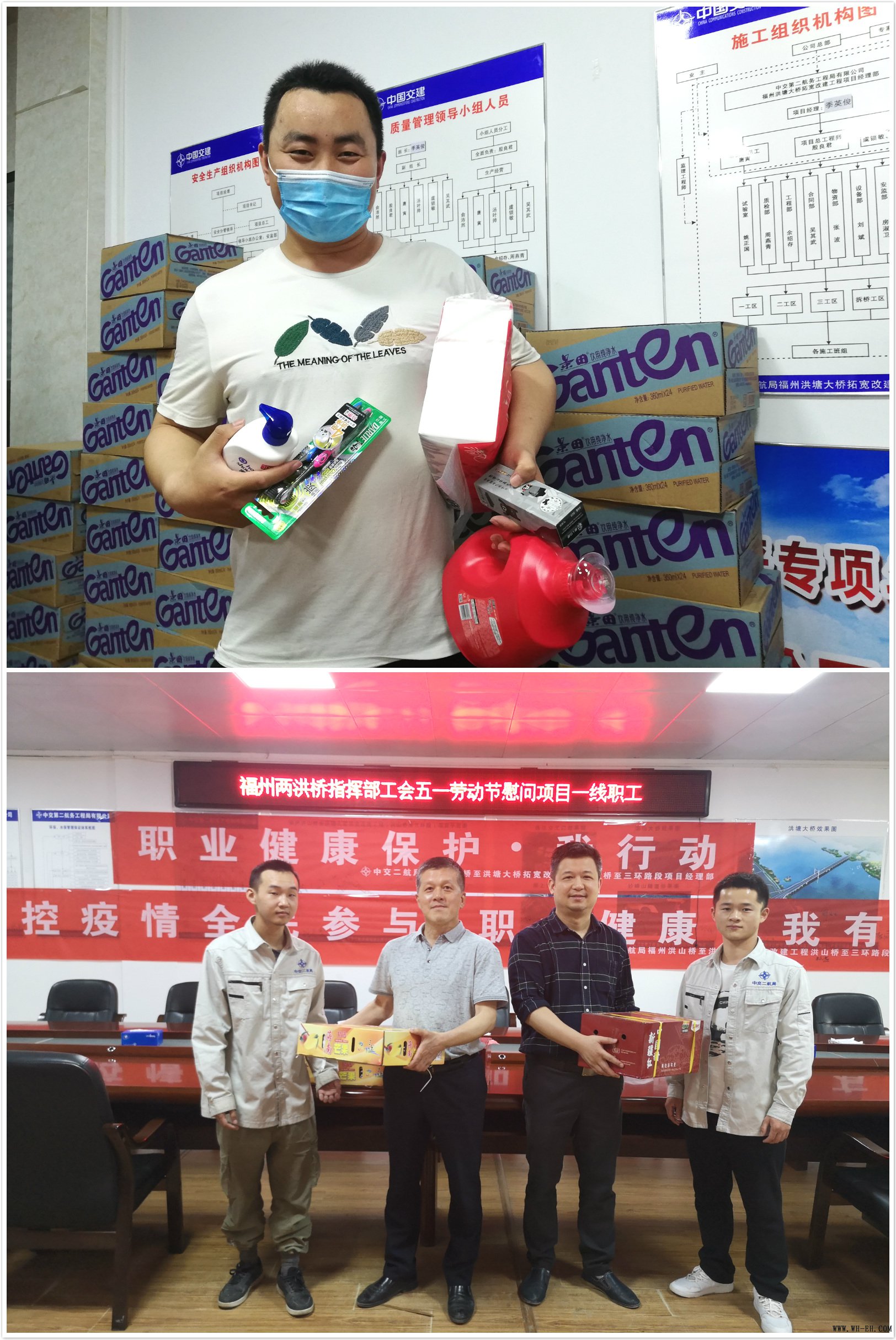 5月1日,福州两洪桥指挥部为职工们发放水果并举办了套圈等活动。此次“五一”活动的举办不仅舒缓了职工们“防疫+复工”的紧张工作状态,而且加强了职工之间的沟通交流、团结协作。