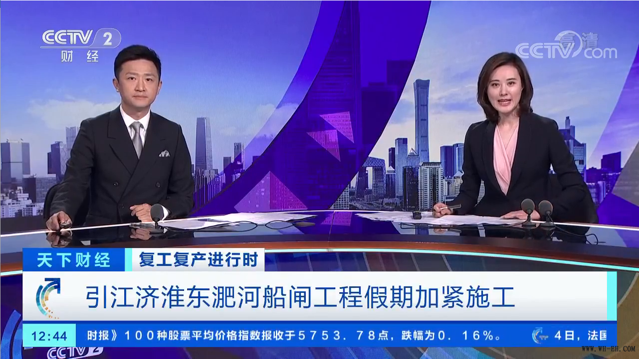 5月5日上午10点到13点,央视新闻频道和央视财经频道对引江济淮东淝河船闸枢纽工程连续进行了两场实况直播。