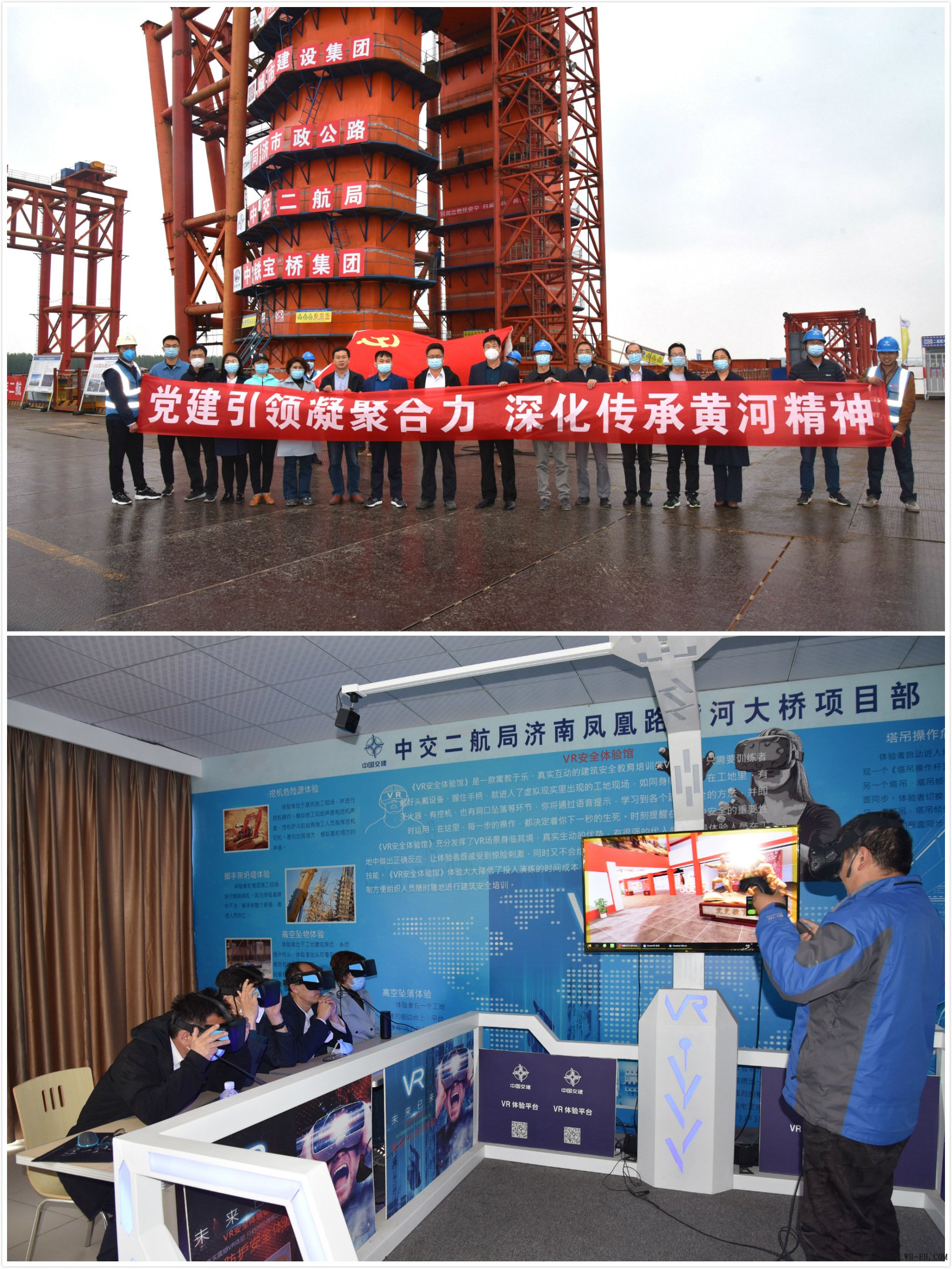 查看施工现场后,俞宪海询问了项目部目前存在的困难,表示济南黄河河务局将继续协调各方关系、做好参谋顾问、精心谋划服务,坚持为项目建设稳步推进提供便利。随后来到项目VR党史教育馆,详细了解了沉浸式红色文化学习的新型党员教育形式。