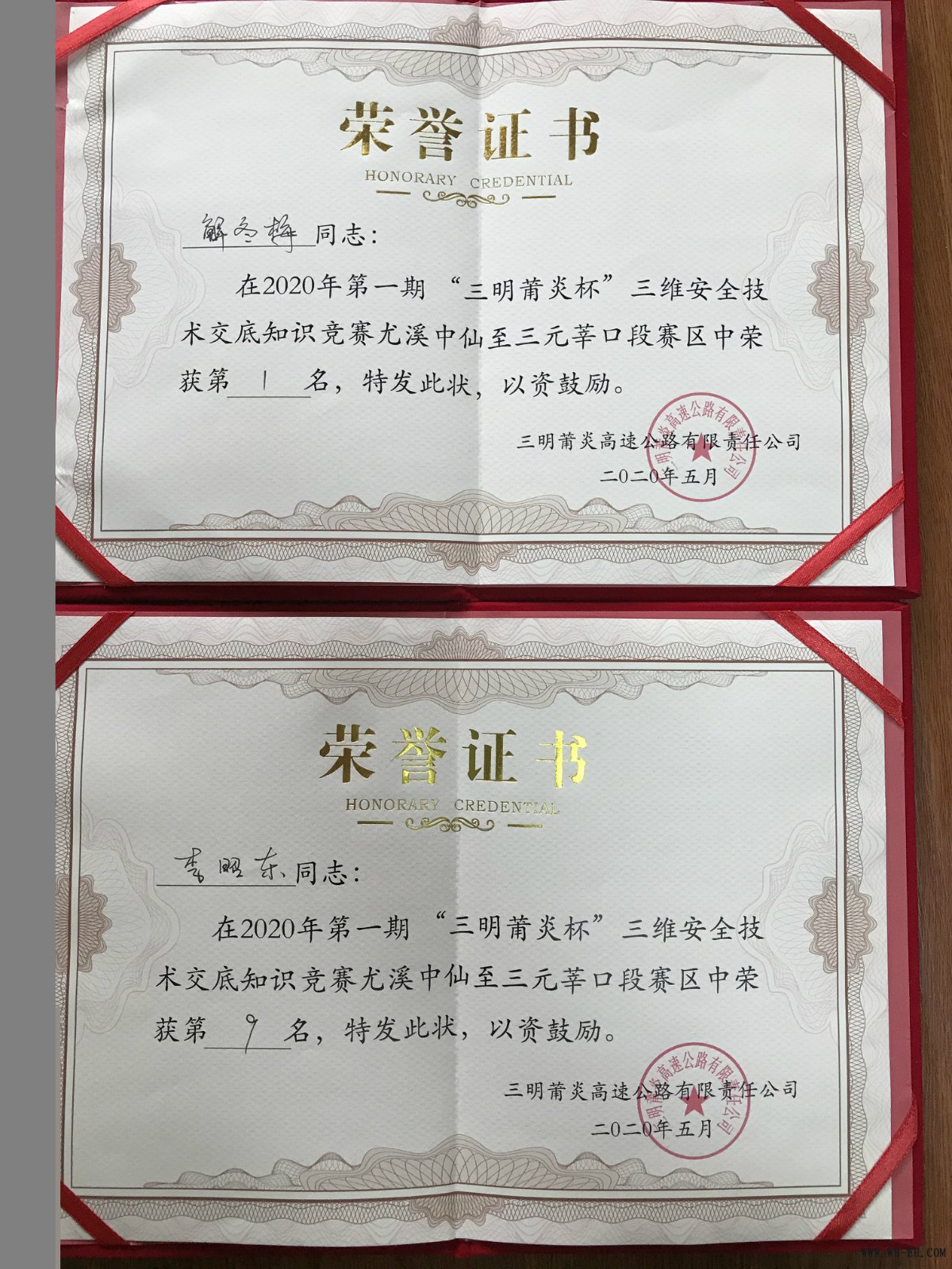 为全面提高施工管理人员和建筑工人的安全知识水平,增强“安全第一 生命至上”的意识,营造安全文明施工浓厚氛围,莆炎高速项目积极宣传组织全体人员参加业主主办的2020年第二期“三明莆炎杯”安全知识竞赛活动。