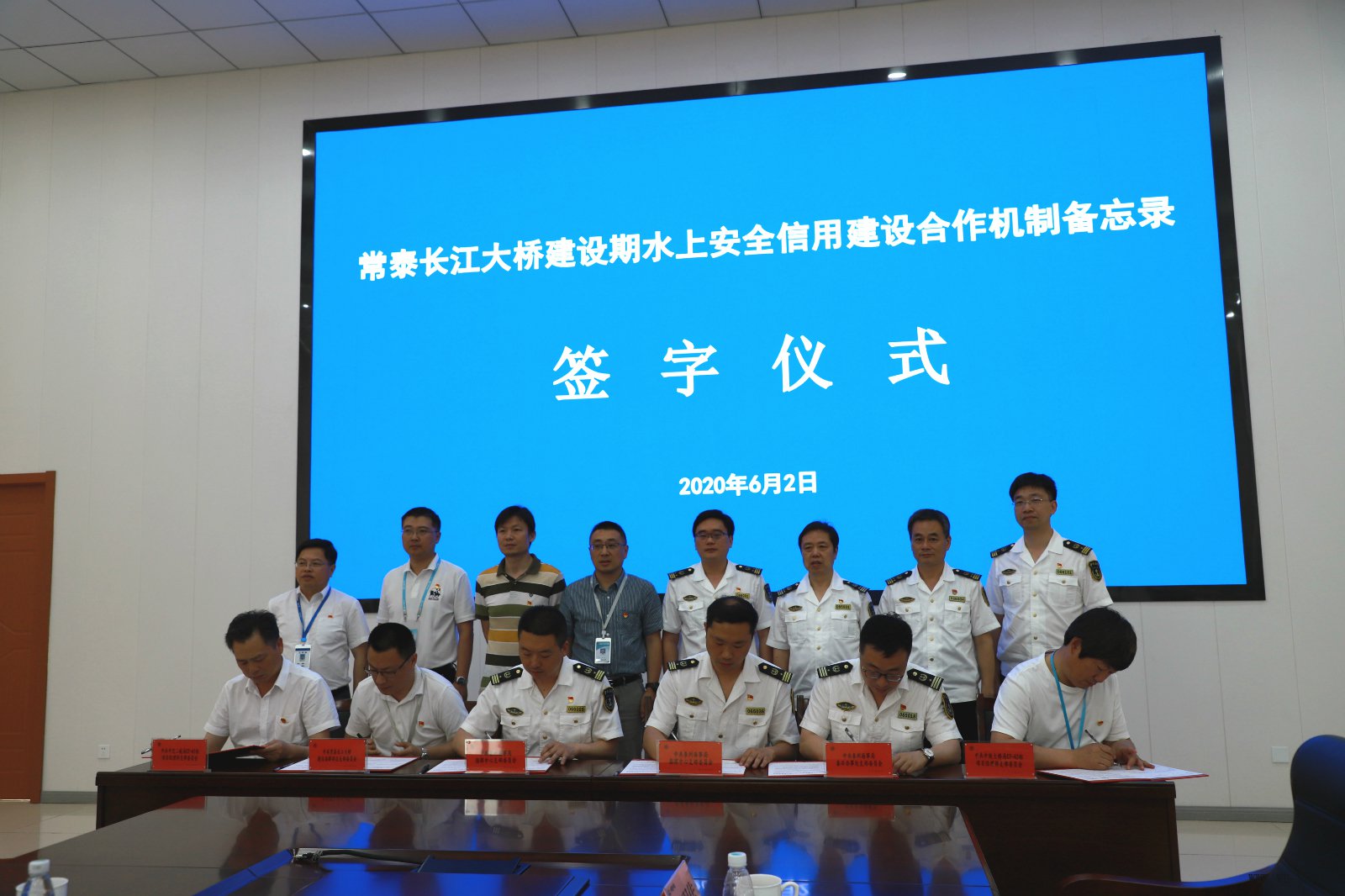 为进一步做好常泰长江大桥台汛期水上安全工作,根据《常泰长江大桥建设期水上安全共建协议》的要求,6月2日,常泰长江大桥建设指挥部,常州、泰州海事局在常州召开了常泰长江大桥建设期水上安全监管例会暨水上安全信用建设合作机制启动仪式,江阴引航站、镇江引航站、江苏海宇常州分公司、项目部主要负责人、安全总监等参加会议。