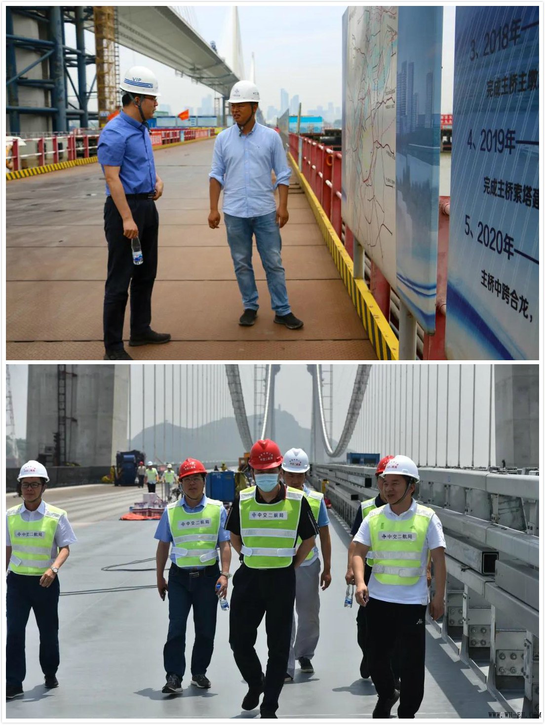 王建平先后来到南京长江五桥和连镇铁路五峰山大桥项目施工现场,查看项目建设情况,并听取了项目负责人关于项目建设进度、安全质量管理、施工重难点、技术创新等相关工作情况的汇报。