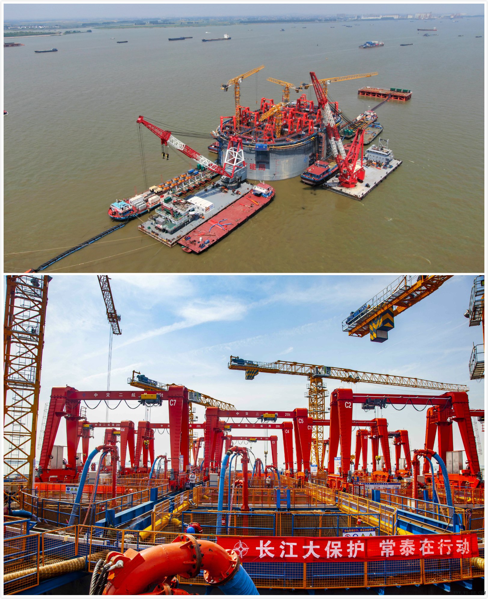 常泰长江大桥5号墩沉井长95米、宽57.8米,横截面面积达4825平方米,相当于13个篮球场大小,建成后的沉井总高72米,足有24层楼高,内部分为28个隔舱,建设总用钢量1.8万吨,为目前世界在建最大水中沉井基础。