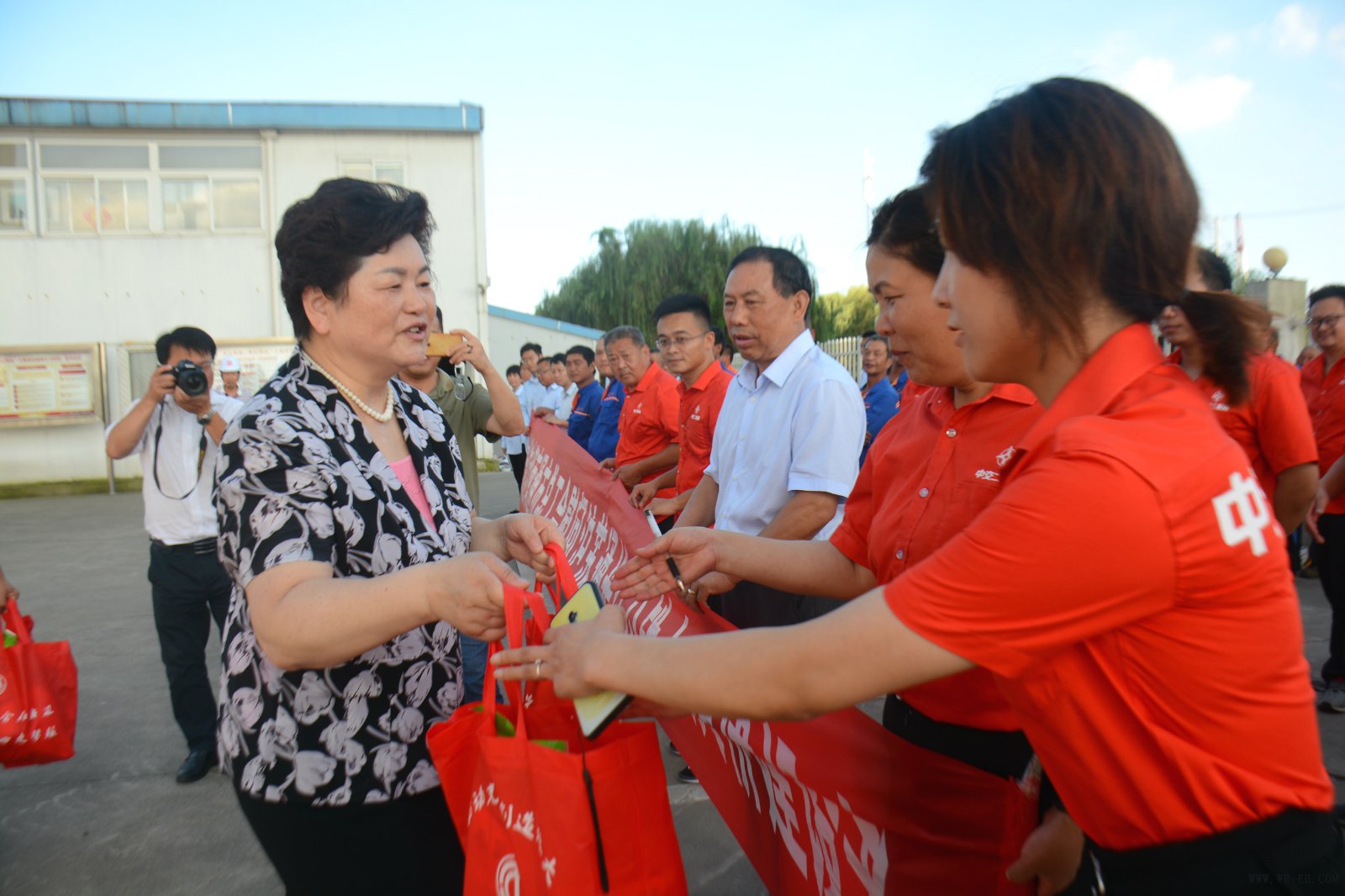 葛玉琴随后与大桥建设者一一握手,并送上了防暑用品和《如何保障劳动安全》一书,详细询问了建设者们在通车后的收尾工作和工地生活情况,叮咛大家在夏季高温天气一定要注意防暑降温、保重身体,并感谢大家6年来为沪苏通长江大桥的辛勤付出。