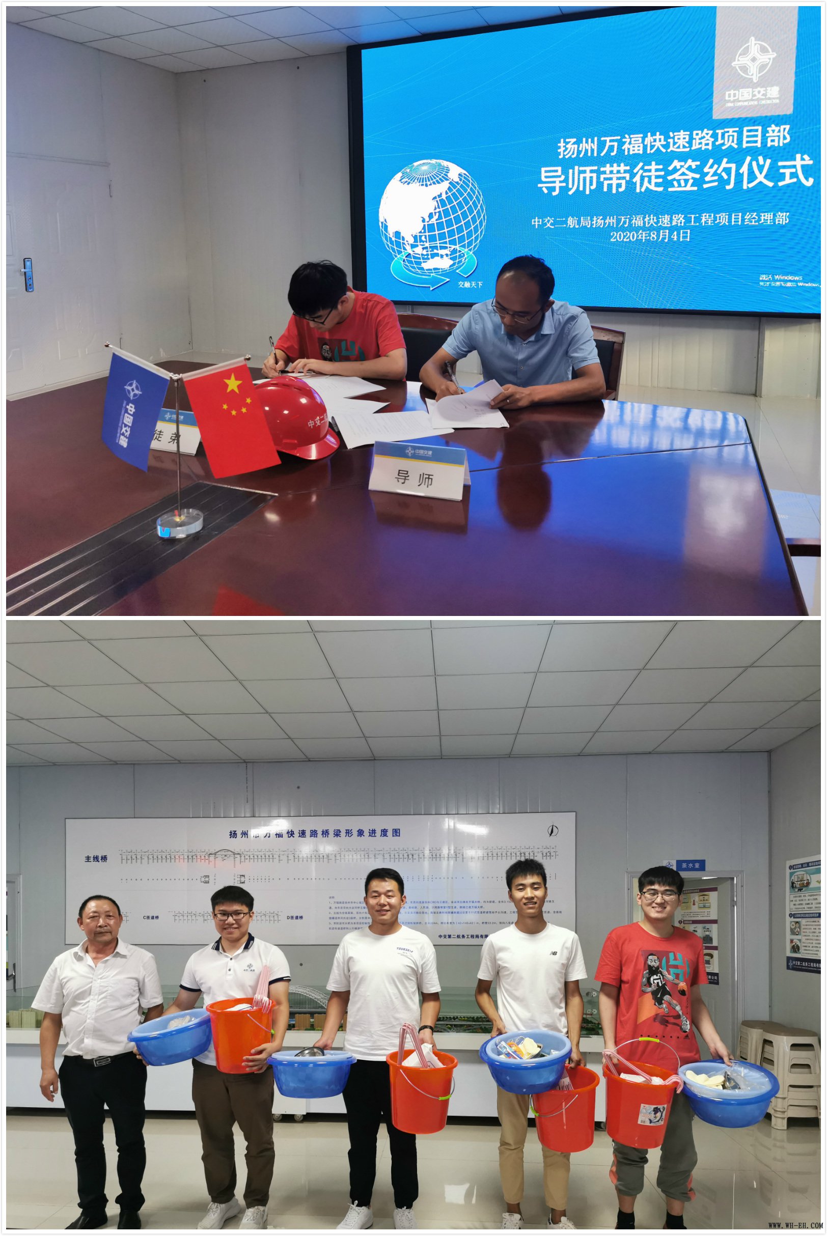 8月4日,扬州万福快速路项目部为喜迎四位新家人的到来,后勤人员早早地就整理好了四间宿舍,支好床、铺好被子、配齐了生活用品。下午,项目部派出的迎接专车顺利返回,安顿好住宿后,项目部组织召开了新员工入职座谈会暨导师带徒签约仪式,项目负责人与新员工深切交流,并送出寄语。