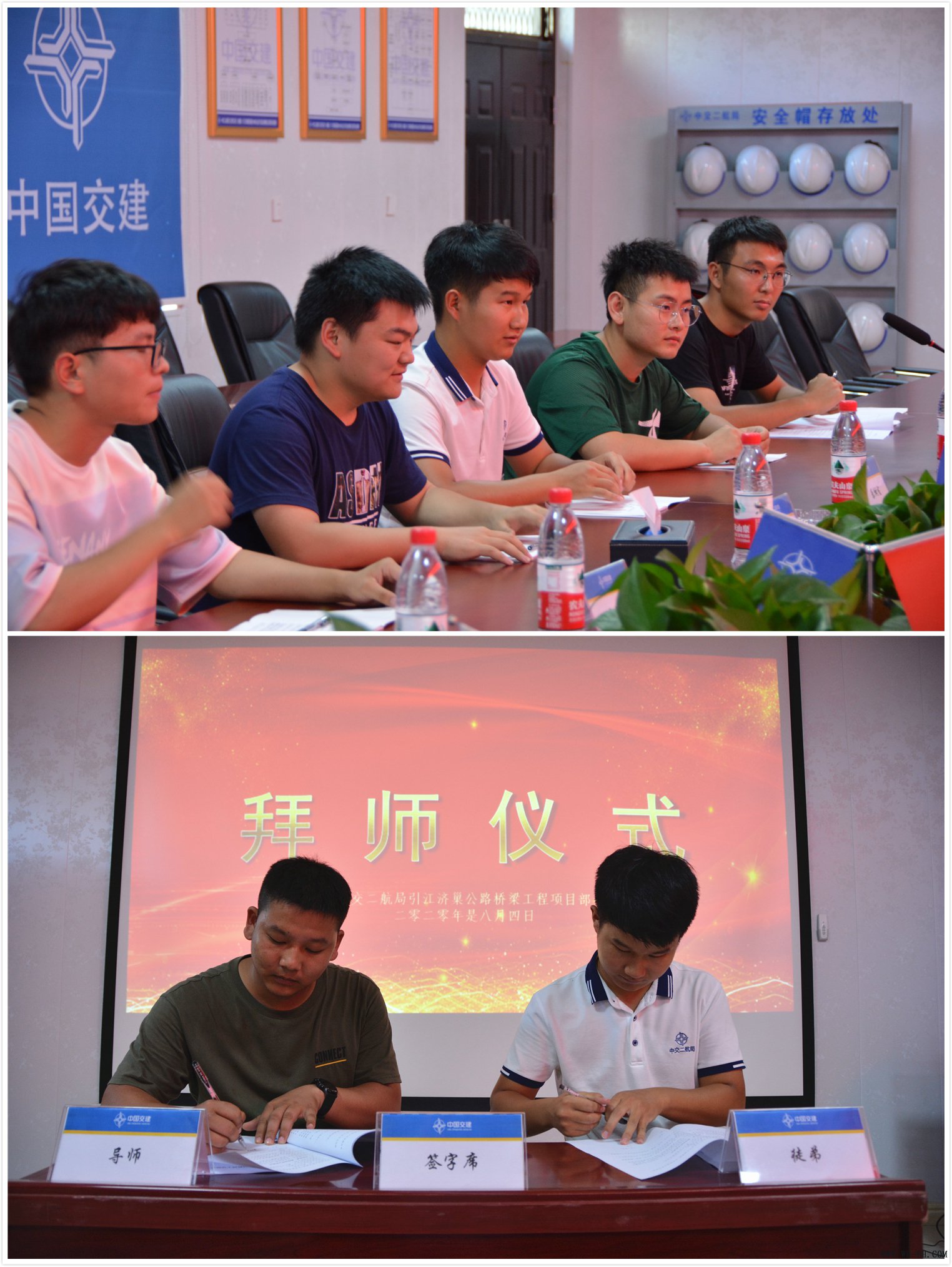 培训结束后,两位新员工与项目部工作经验丰富、工作能力突出的两位“老”员工签订了师徒合同。导师们会帮助新员工加快角色转变,在工作、生活方面更快的融入进防城港市沙企大道项目部这个大集体中。