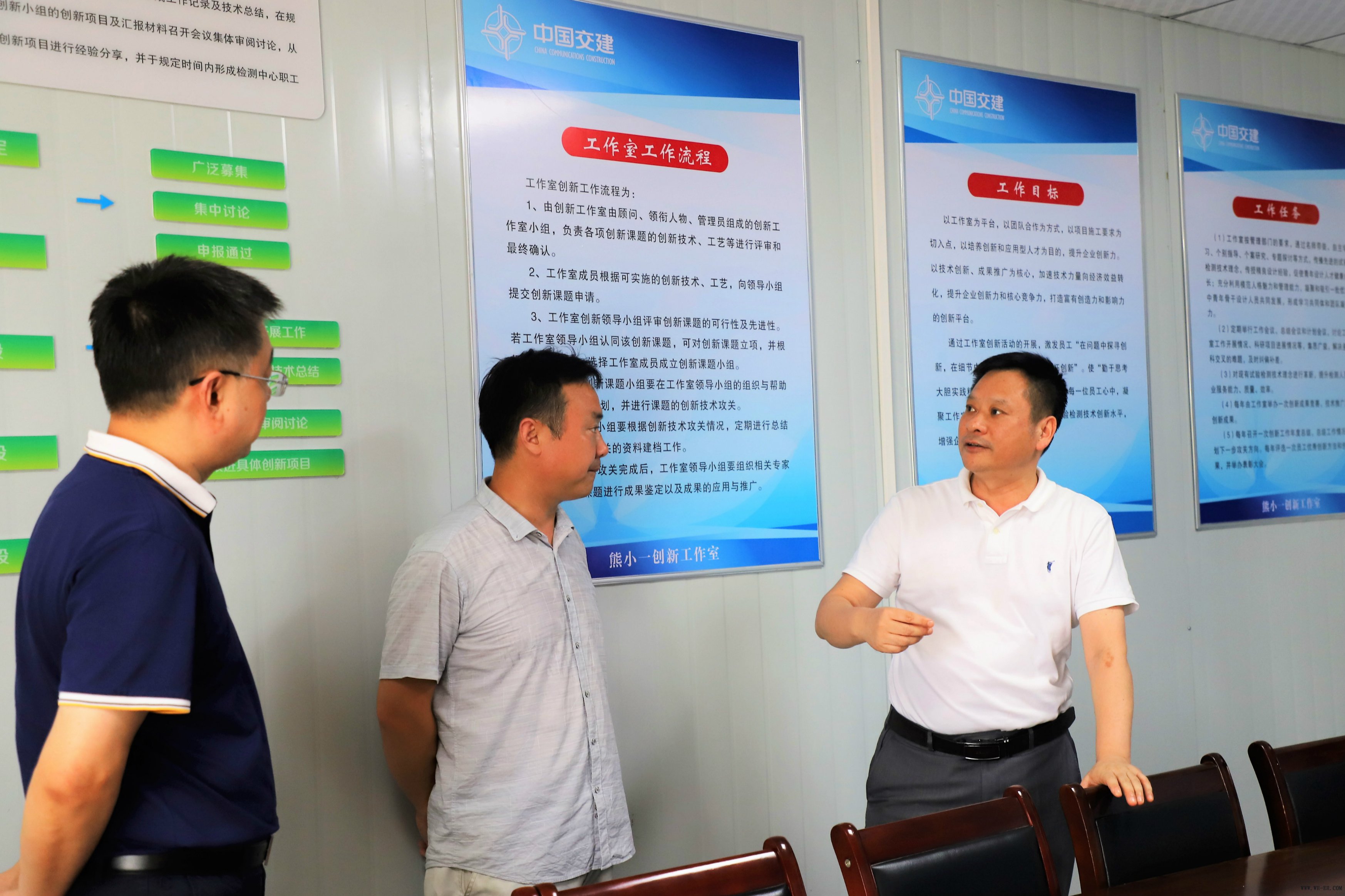 甘新平对工作室建设给予了高度评价,并特别强调以下两点:一是课题选择要继续聚焦常泰大桥建设需要解决的突出问题,特别是在A3标墩柱清水混凝土方面;二是工作室日常工作开展要重视传帮带。充分利用好工作室平台,发挥高技术、高技能试验人才示范引领和骨干带头作用,激励广大职工立足试验检测岗位、创新创效,多开展交流、研讨、学习活动,帮助年轻员工更好更快地成长、成才。