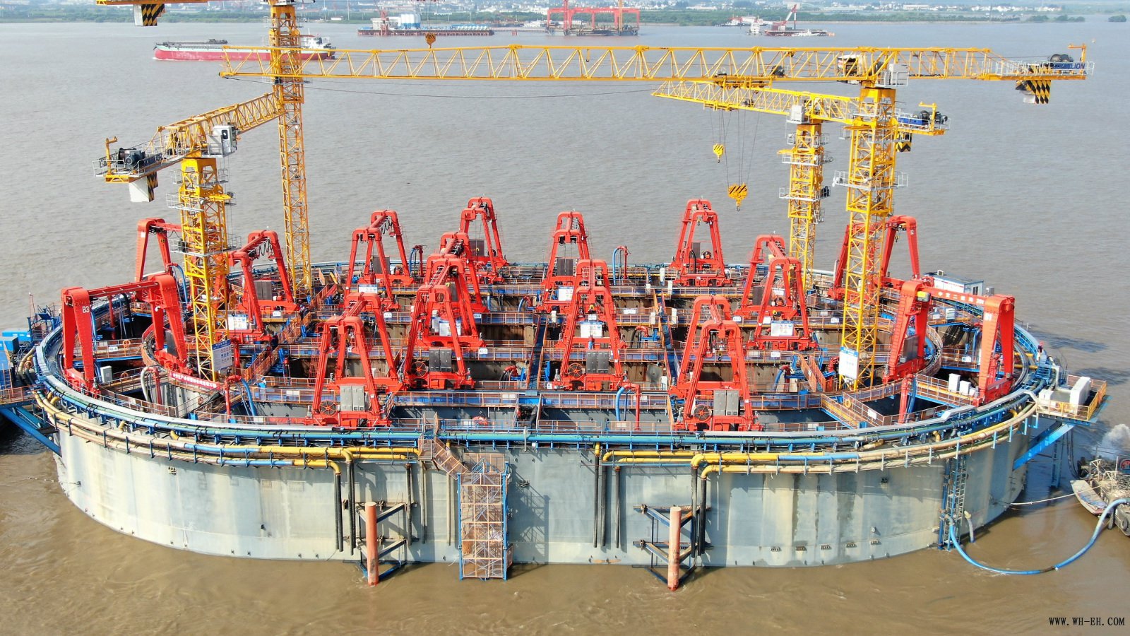8月15日下午,常泰长江大桥5号墩钢沉井第二次取土下沉顺利结束。