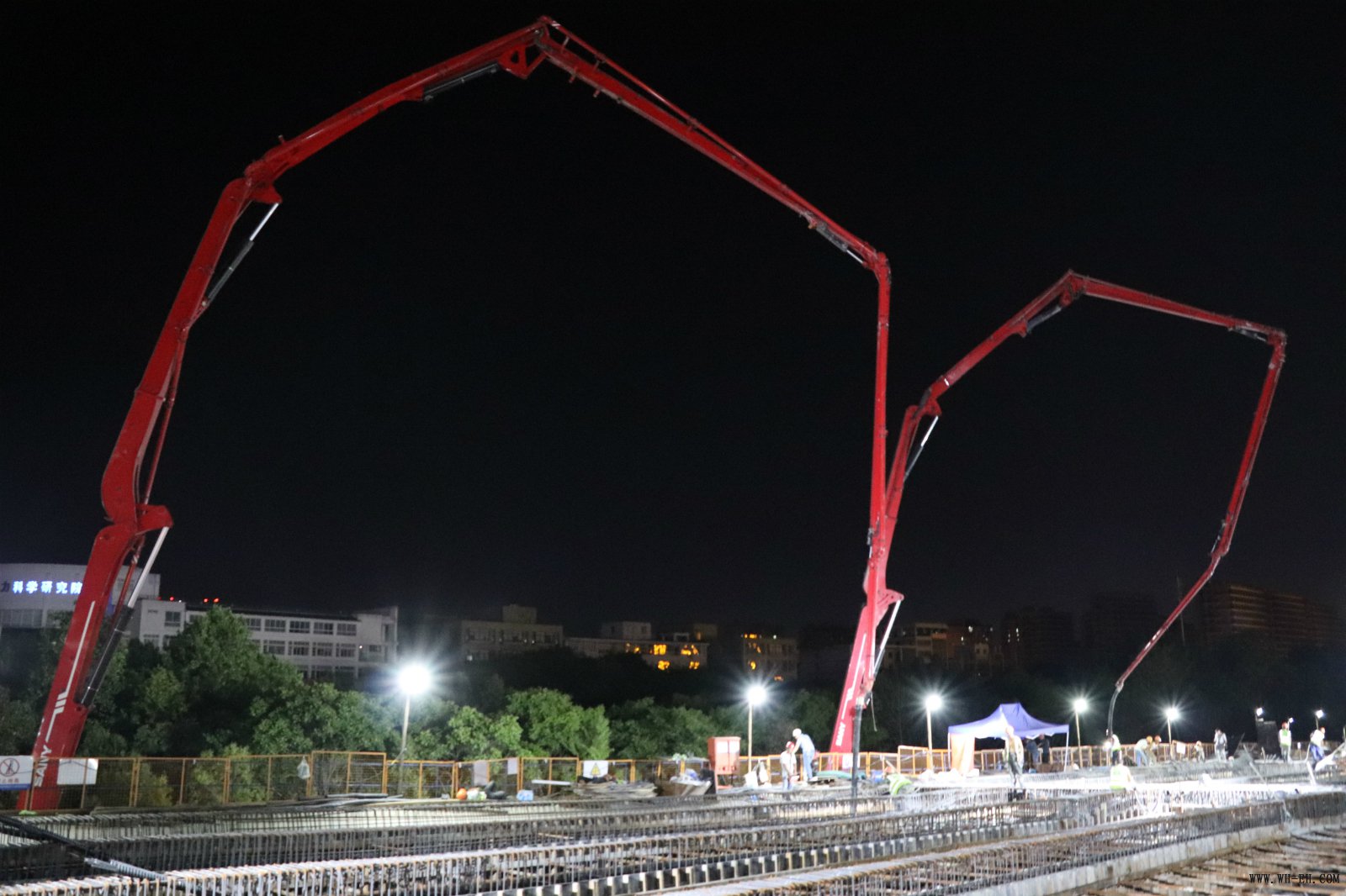 8月16日,在32个小时持续浇筑后,留祥路提升工程项目主线桥第二联现浇箱梁第一次浇筑顺利完成。