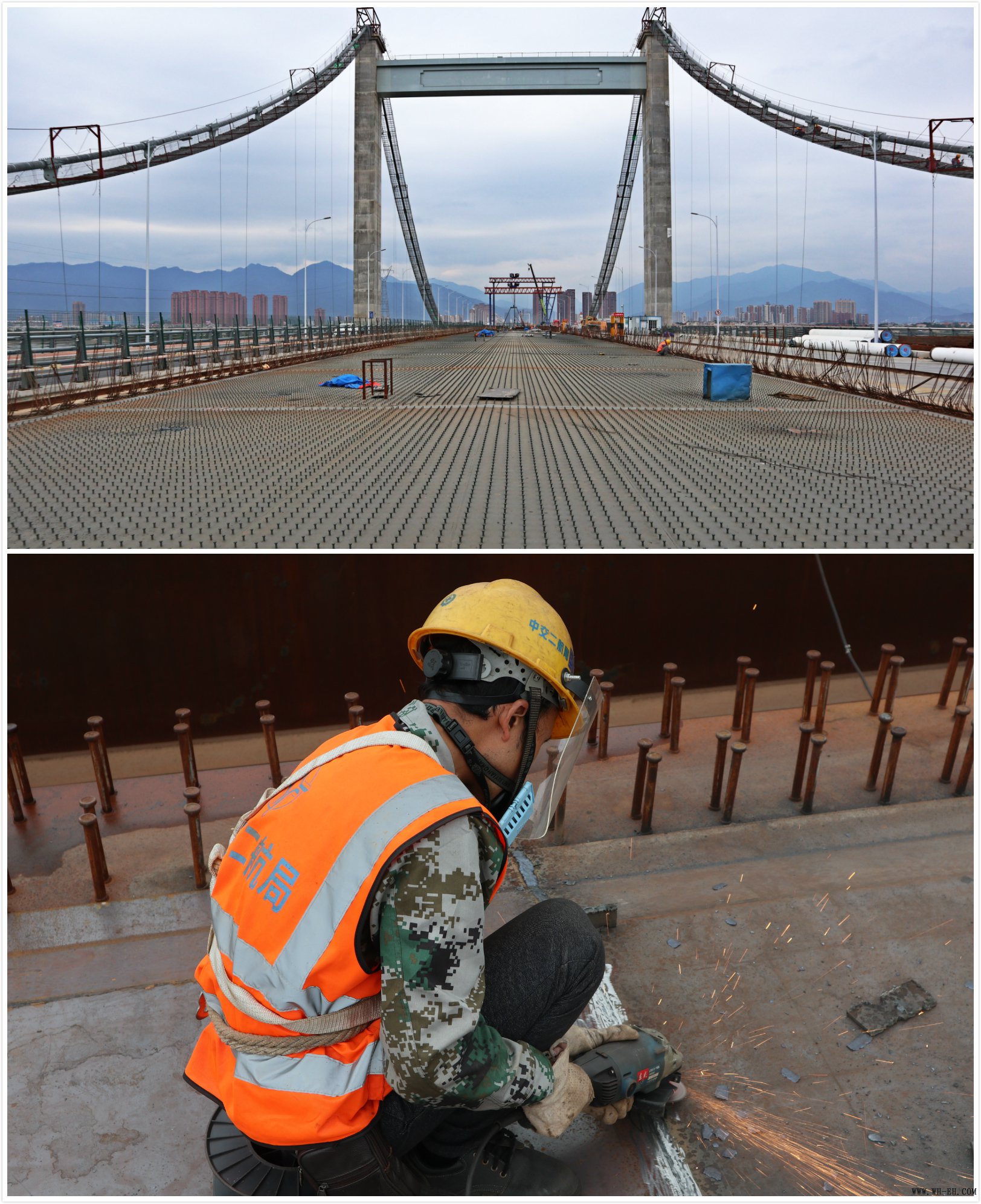 目前,洪塘大桥西引桥盖梁已全部完成浇筑,钢梁架设已经完成了六联,焊接工作正在紧张有序进行。而全长400米的主桥钢箱梁吊装已经完成了80%,整体形象已呼之欲出。东辅道人行道也提前完成了北半幅地道施工。