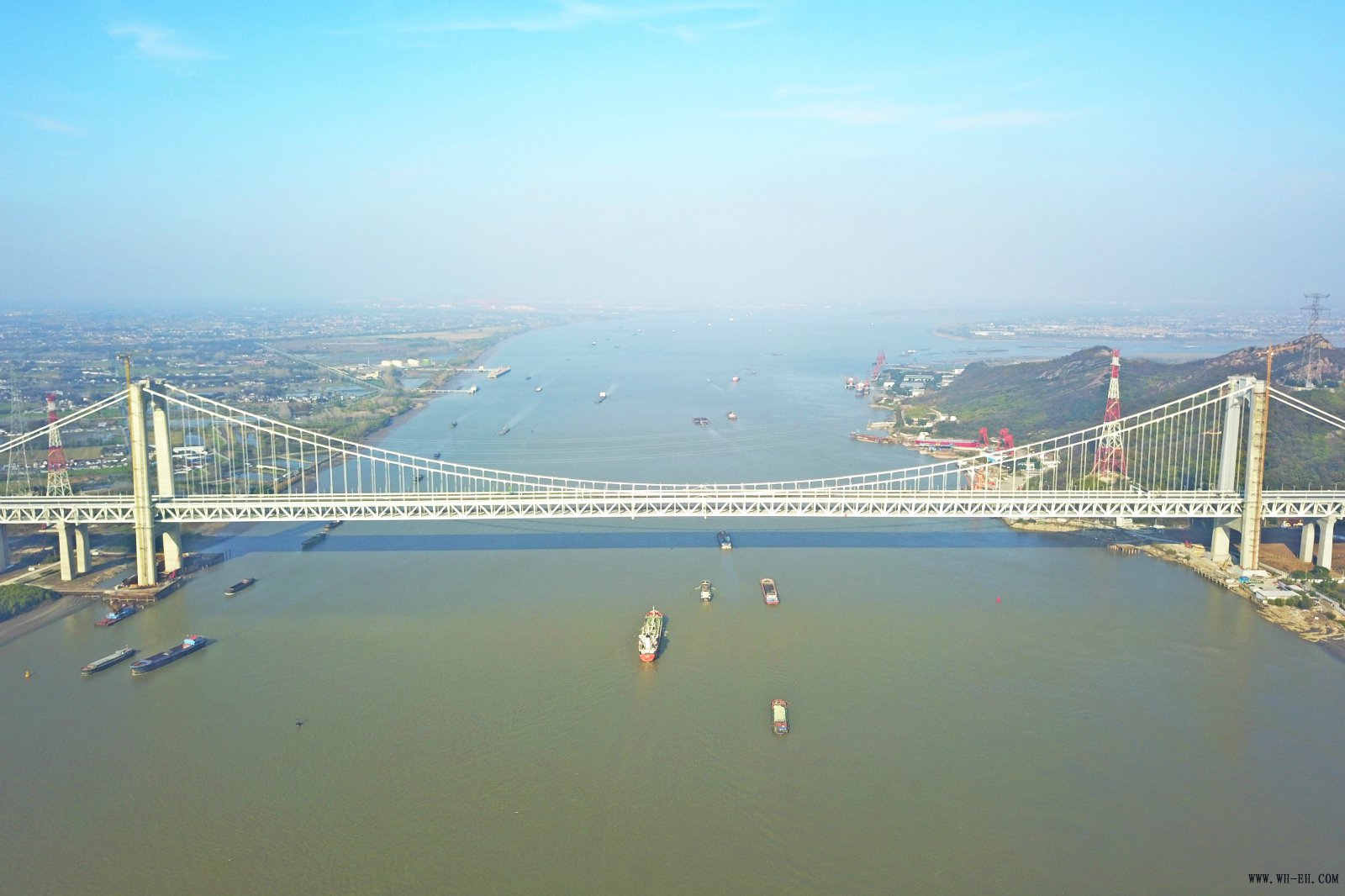 其中,公司承建的五峰山长江大桥是连镇铁路和京沪高速公路南延的关键控制性工程,也是连镇铁路跨越长江的控制性及重难点工程。五峰山长江大桥全长6409米,其中主桥长1432米,跨江主跨1092米,采用单跨悬吊钢桁梁悬索结构,上层为高速公路双向八车道,设计时速100公里;下层为四线高速铁路,设计时速250公里。五峰山长江大桥为世界首座高速铁路悬索桥,中国首座公铁两用悬索桥,中国首座铁路悬索桥。建成后将填补世界高速铁路悬索桥、中国公铁两用悬索桥和中国铁路悬索桥三项空白,并在国际范围率先建立起中国高速铁路悬索桥的设计方法、计算理论和相关技术标准。