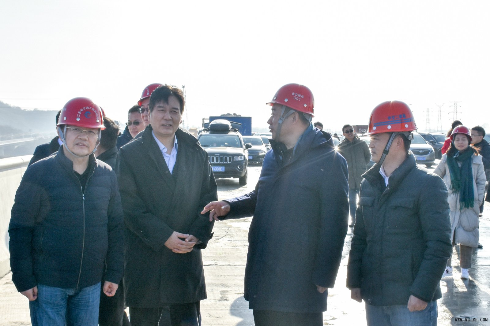 2020年12月25日,正值岁末年初之际,江苏省交建局局长蒋振雄、江苏交通控股有限公司总经理顾德军及江苏宁沪高速股份有限公司等一行40余人到五峰山接线项目现场办公,公司副总经理、五峰山接线项目经理朱其敏陪同检查。