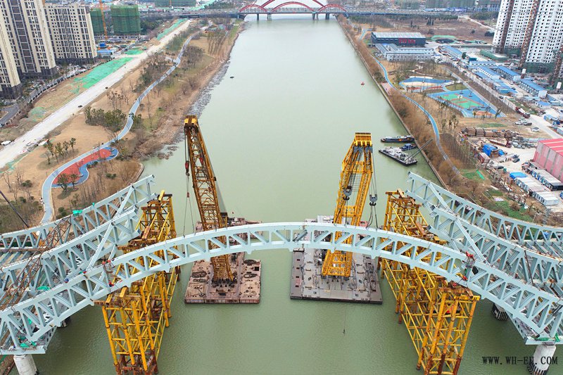 1月16日,扬州万福快速路项目关键线路跨京杭大运河大桥边拱中跨合龙段顺利完成吊装,大桥刚柔并济的精美弧线造型已初显,这也是该桥三榀合龙段的首节安装,预计春节前将完成三榀拱肋的合龙任务。