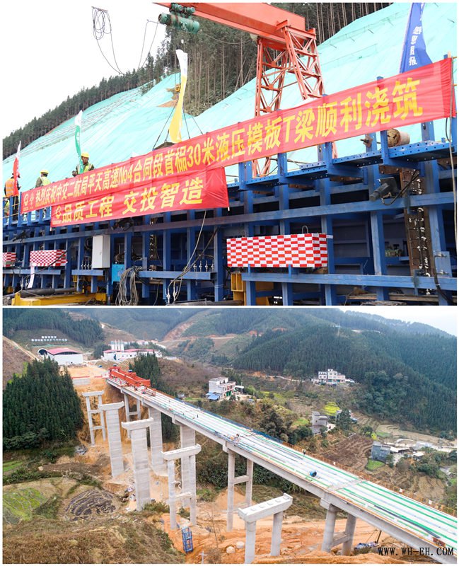 1月26日,广西天峨项目群多点开花,迎来三个施工节点,开局即冲刺,年初再创佳绩:平天高速全线首榀T梁成功架设并浇筑全线首榀30米液压T梁、南天高速天峨段首座高速桥梁半幅贯通。