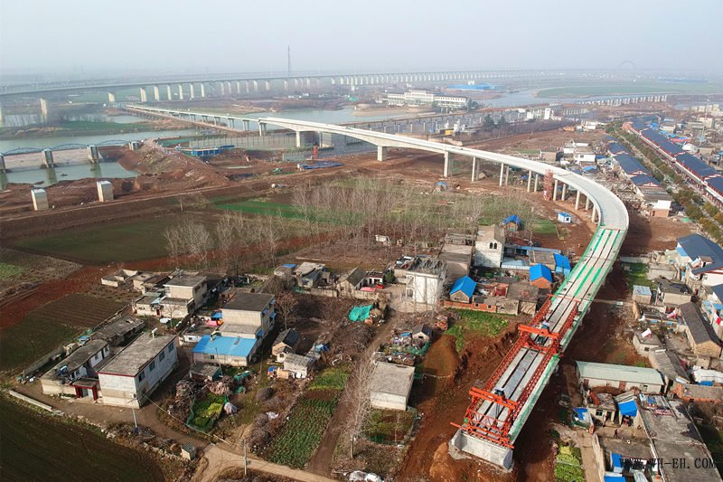 1月28日,随着27-2号梁段安装到位,东淝河跨闸桥梁预制T梁已全部架设完成,至此全桥贯通。