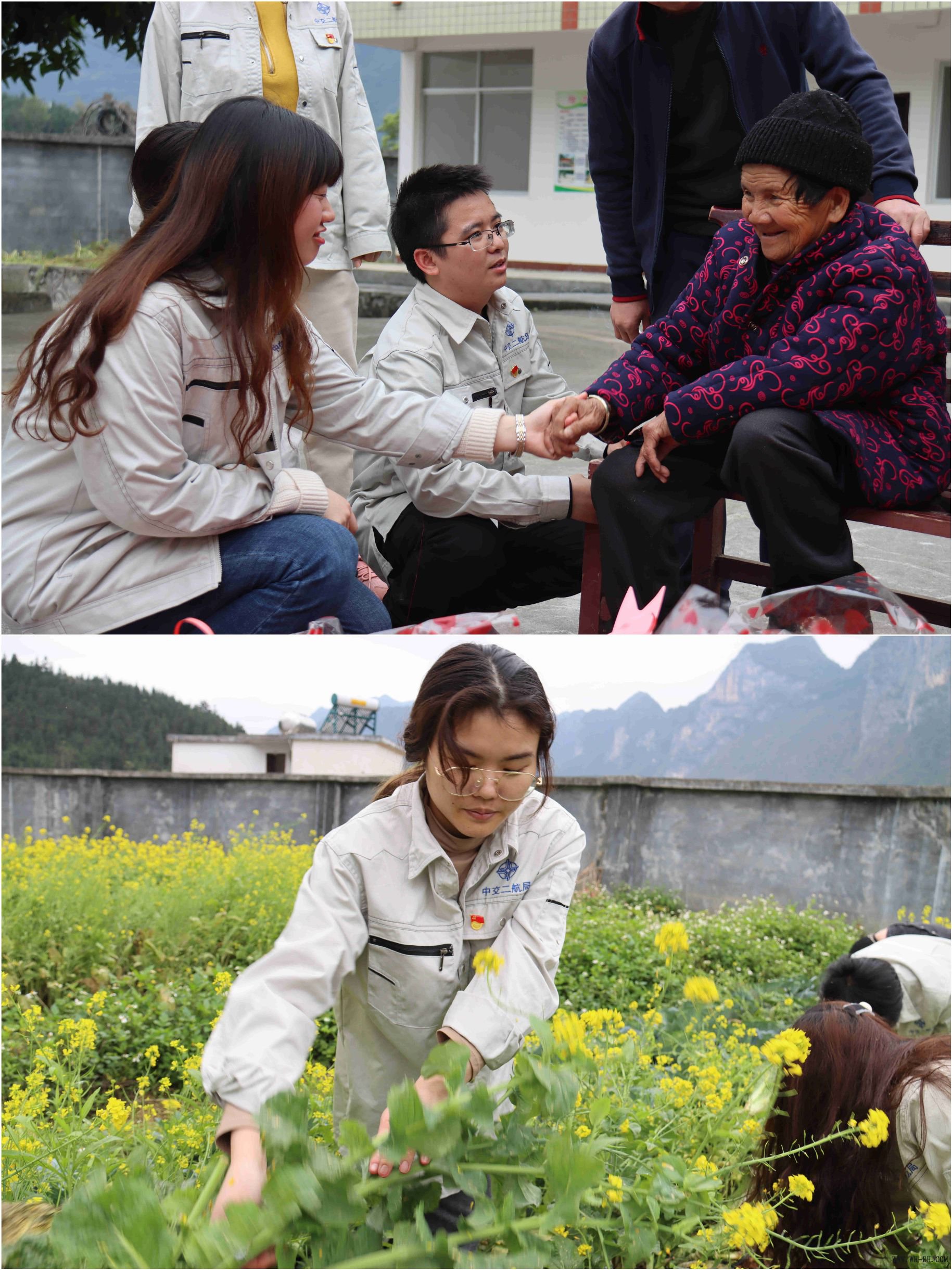 这些勤快的女娃们只想为老人们做一些力所能及的事儿——捶背、按摩、唠嗑儿、整理床铺、清理菜园......她们忙里忙外地忙活着,老人们看在眼里,纷纷竖起大拇指点赞。他们或是满面皱纹、或是白发婆娑,但他们都无一不是慈祥的可爱的老人们,他们或许不知道这帮热心娃儿们的名字,但是他们知道这是中交二航局的娃儿们来看望他们了。