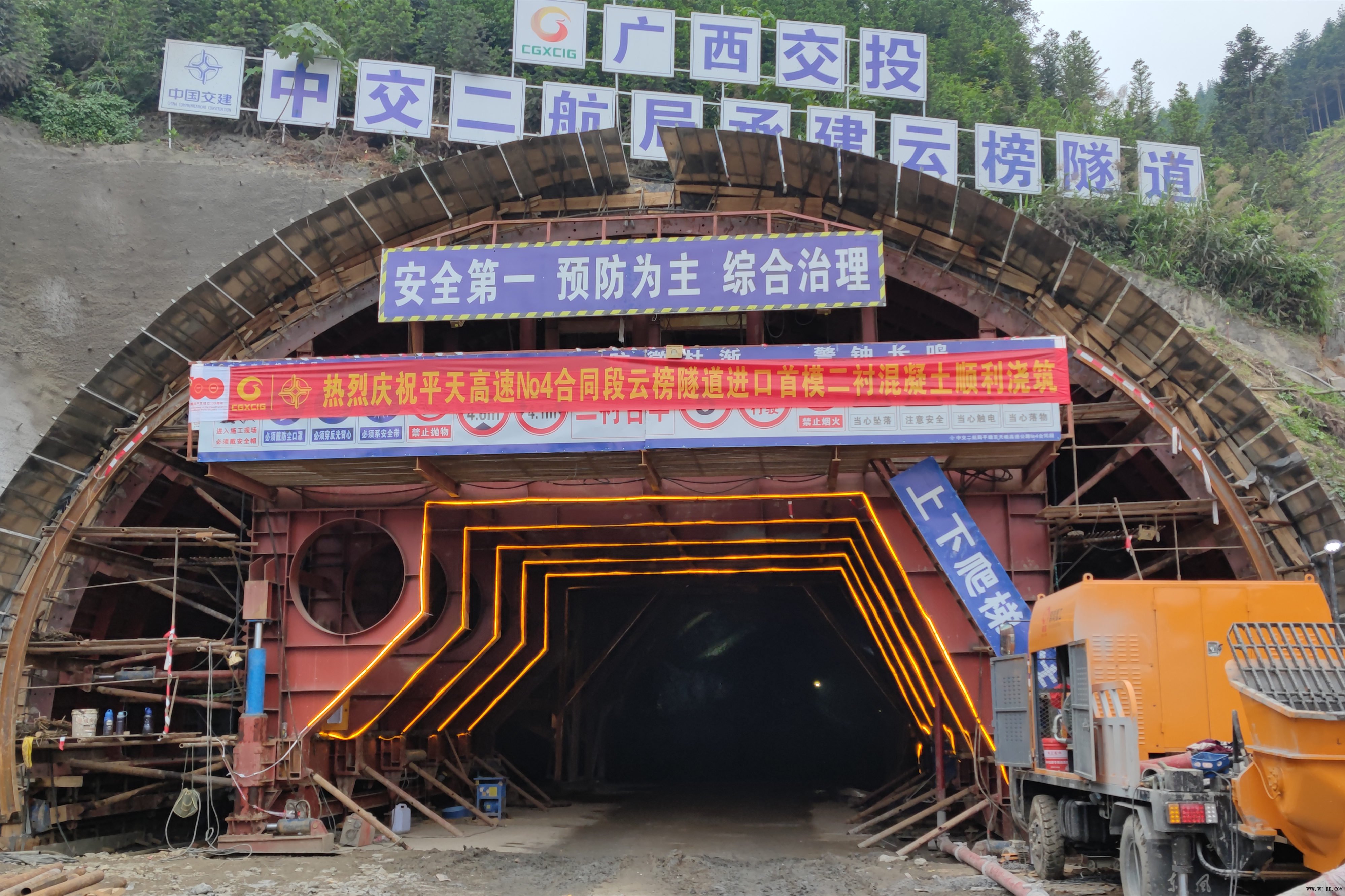 5月2日早上8点,公司承建的平塘至天峨高速公路№4合同段云榜隧道进口左洞首模二衬混凝土顺利浇筑,这是平天高速隧道工程完成的首模二衬,标志着平天高速隧道施工进入了新阶段。