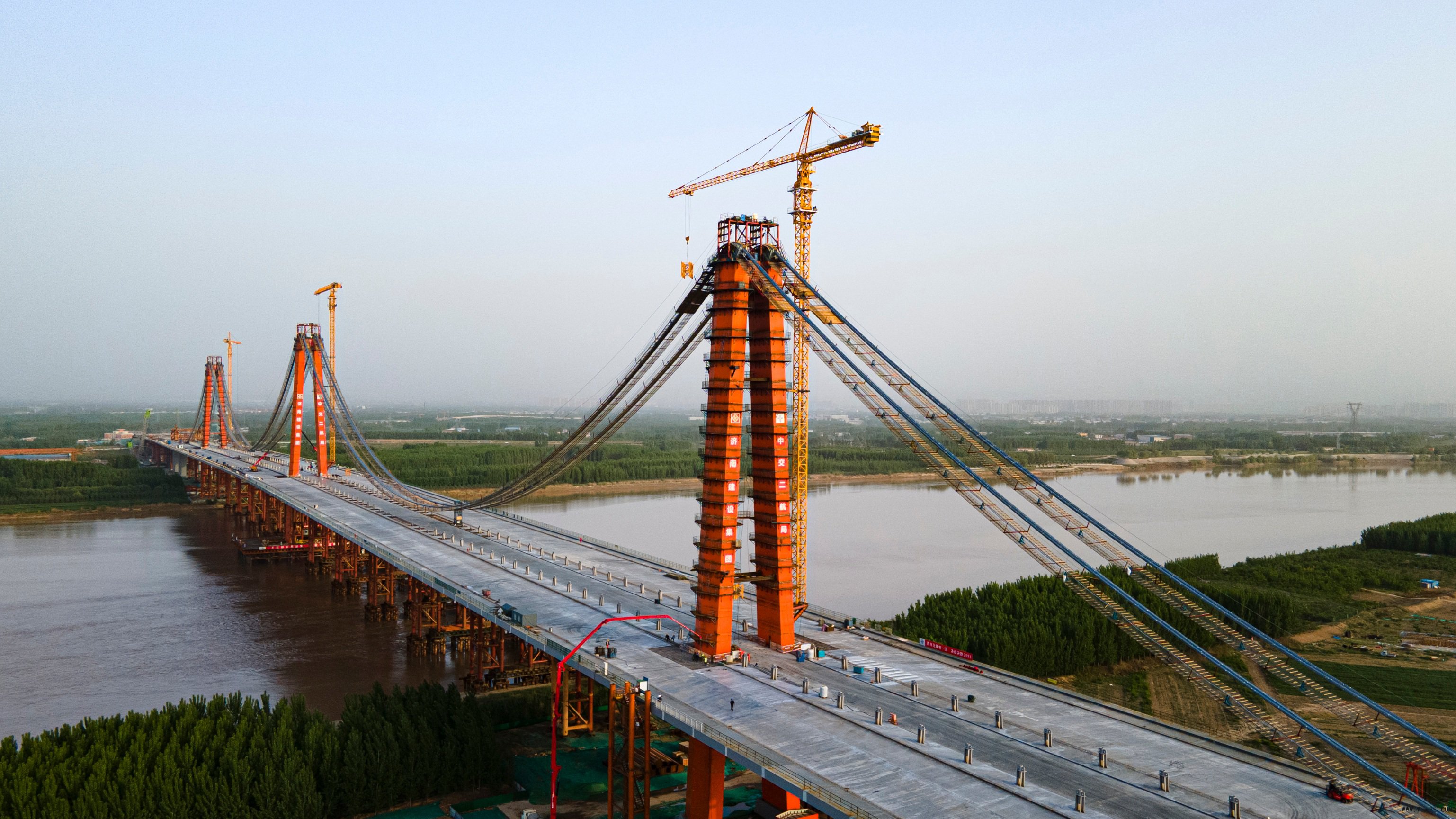 据悉,济南凤凰黄河大桥为三塔自锚式悬索桥,主桥全长1332米,主跨2×428米,整幅全宽61.7米,其桥梁跨径及梁宽均居同类型桥梁世界之最。