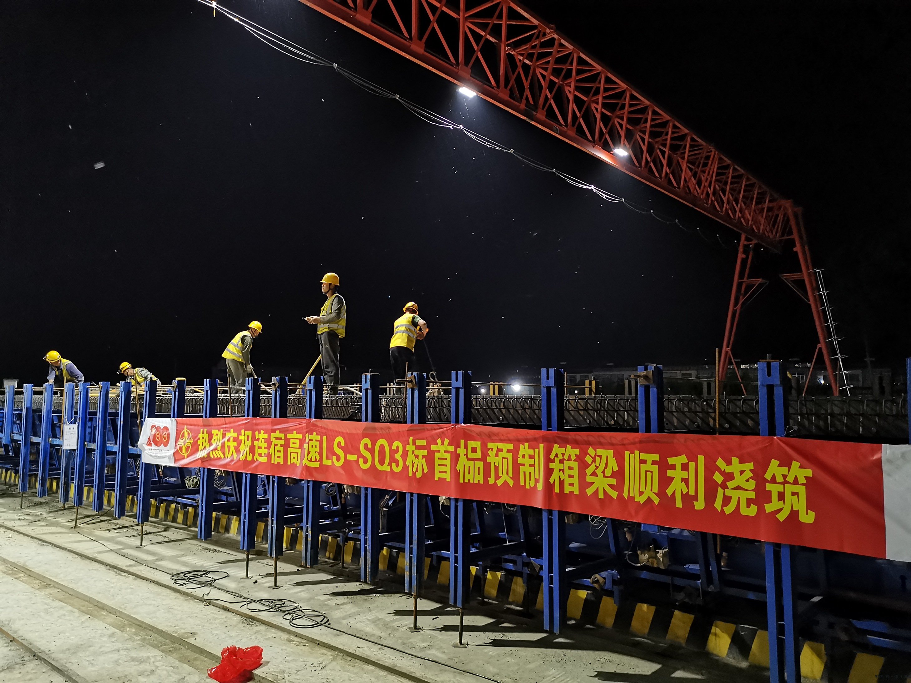 5月26日凌晨,公司承建的江苏连云港至宿迁高速公路3标段首件预制箱梁浇筑完成。