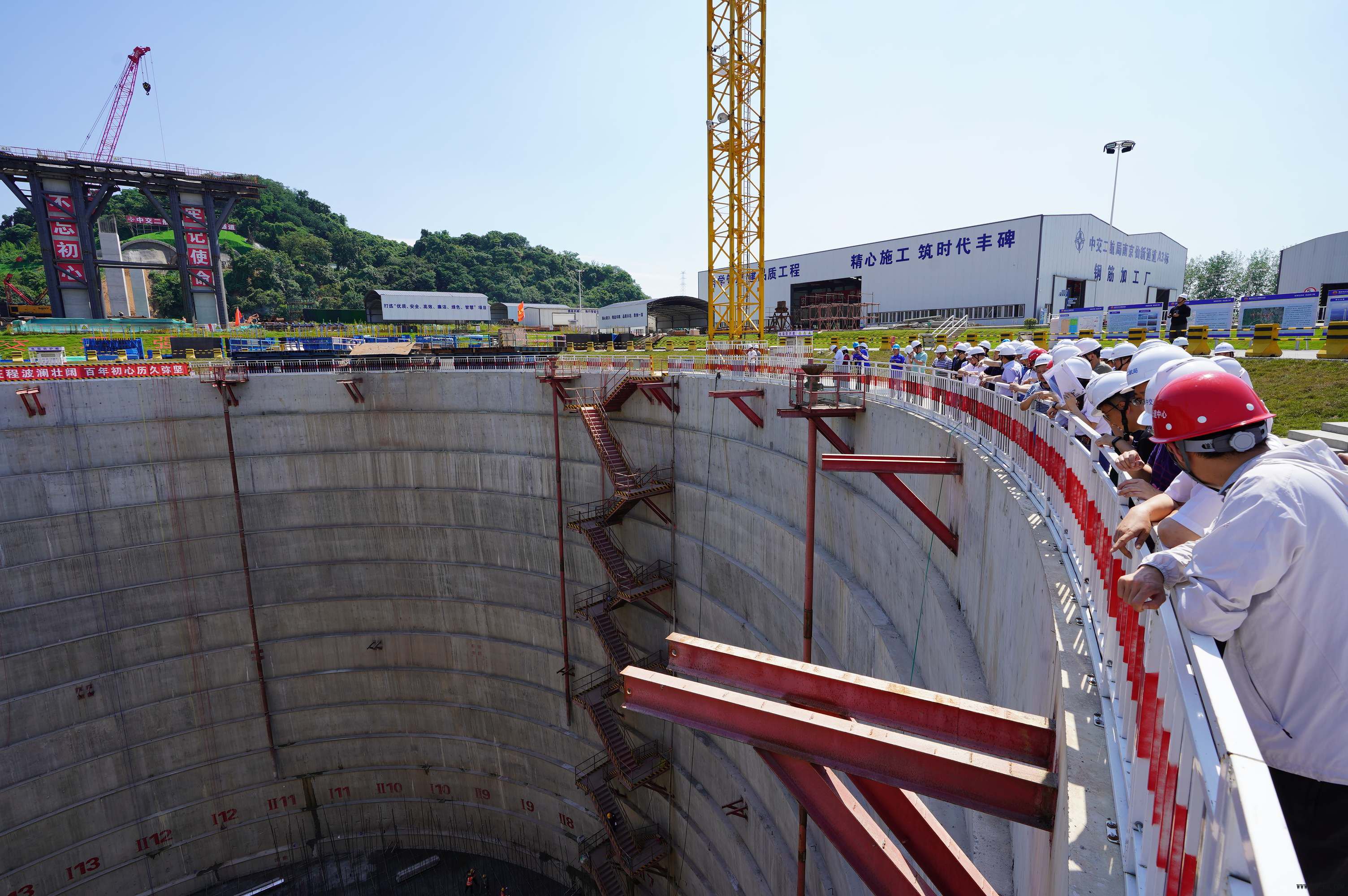 6月21日下午,公司南京仙新路过江通道项目部迎来江苏省土木建筑学会桥梁隧道专业委员会观摩学习,公司党委副书记、总经理赵成立,副总经理种爱秀陪同参观。