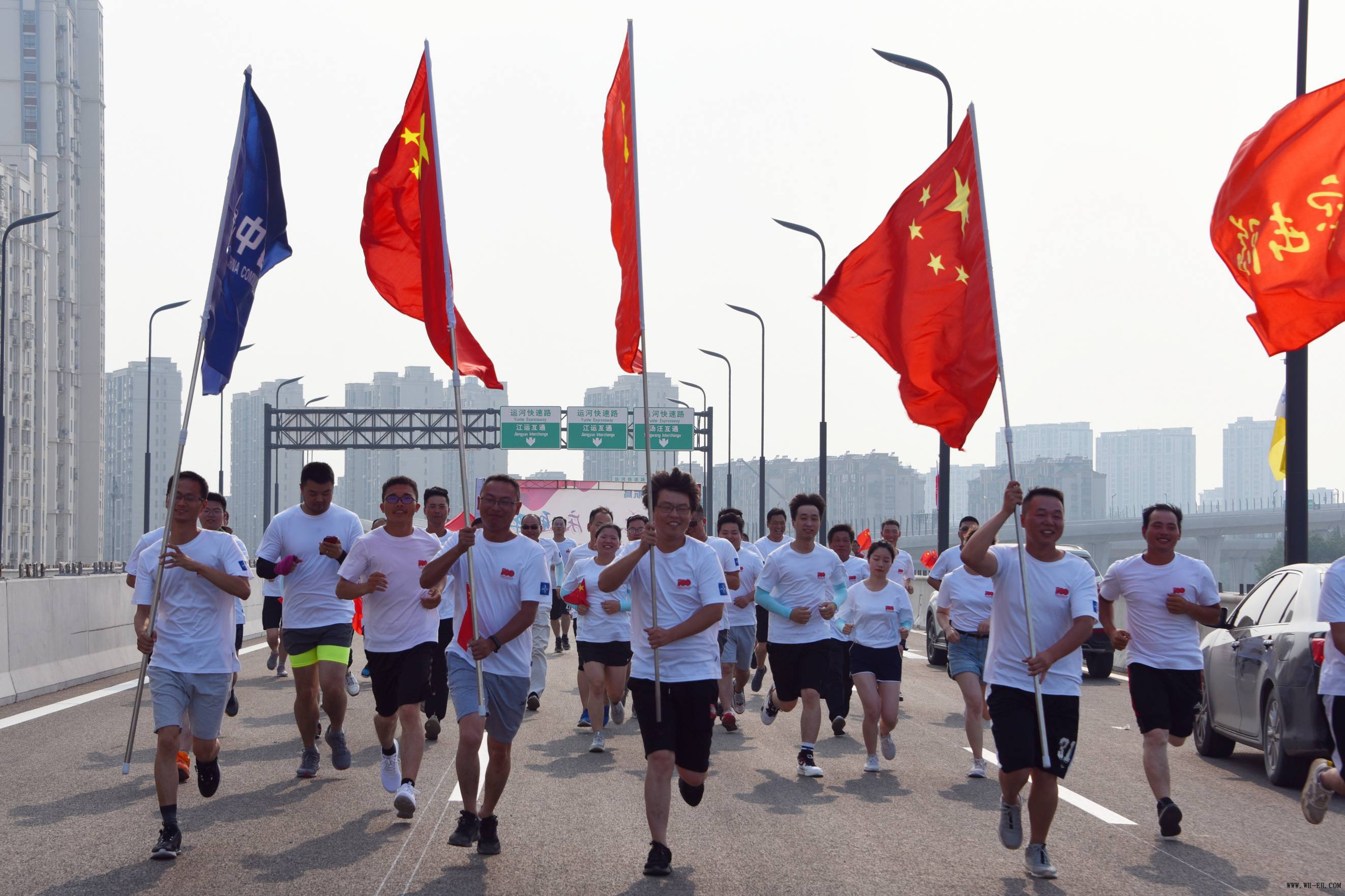 当天下午5点整,随着一声哨响,四十多名员工与协作单位代表组成的队伍被瞬间点燃,似火奔跑,鲜艳的党旗和五星红旗在夏日的烈阳下迎风飞舞,以项目主线高架桥为赛道,往返6公里,占比全程马拉松的七分之一,呼应“七一”,迎接中国共产党成立100周年,共同欢庆万福快速路项目即将建成通车。