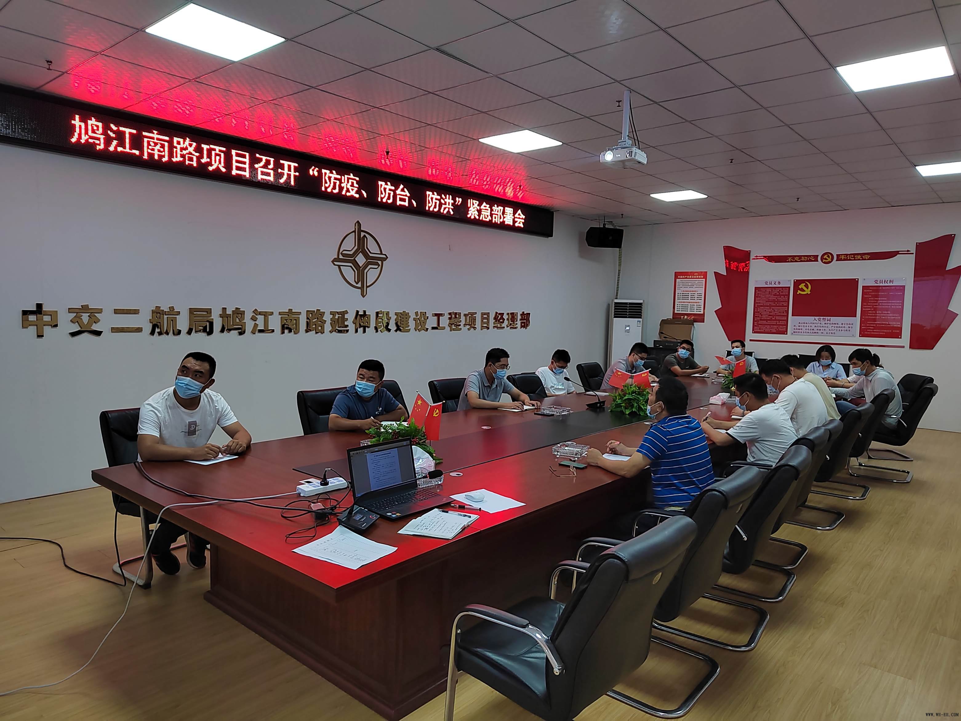 为应对种种紧急情况,26日当天,芜湖鸠江南路延伸段工程项目部召开“防疫、防台、防汛”紧急部署会。