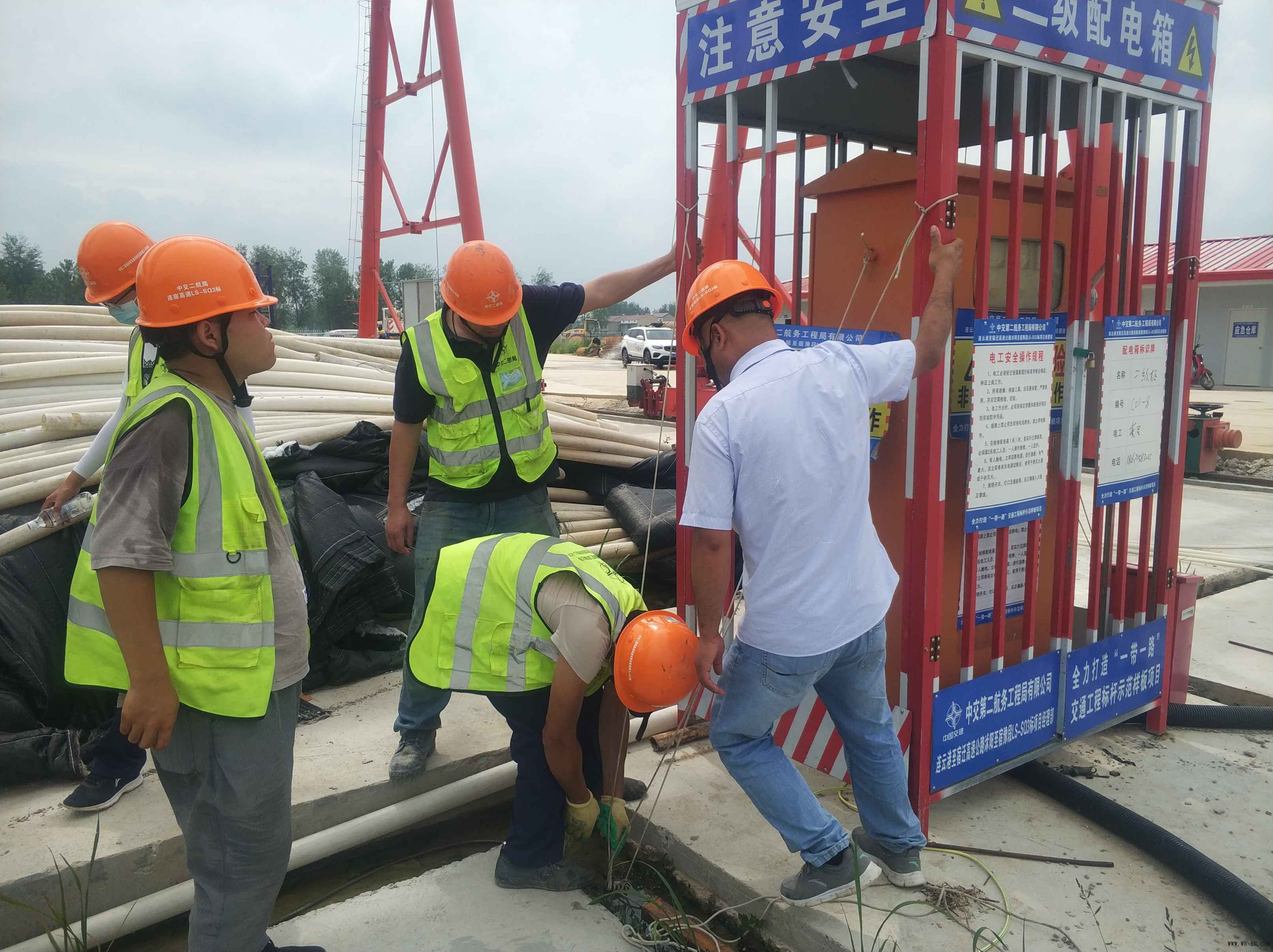 在接到气象部门的预警信息后,项目部为压实工作职责,立即成立了防汛防台工作领导小组,指导防汛防台工作的顺利开展,并在第一时间对项目全体人员进行了紧急动员。在“烟花”到来前,项目已完成了应急物资、机具、药品的准备工作,生活用水和生活必备物资的储备工作,现场沟渠和生活区水道的清理和疏通工作,大型机具和特种设备的固定和保护工作,机电设备的防护和断电工作,临建设施的加固和转移工作。