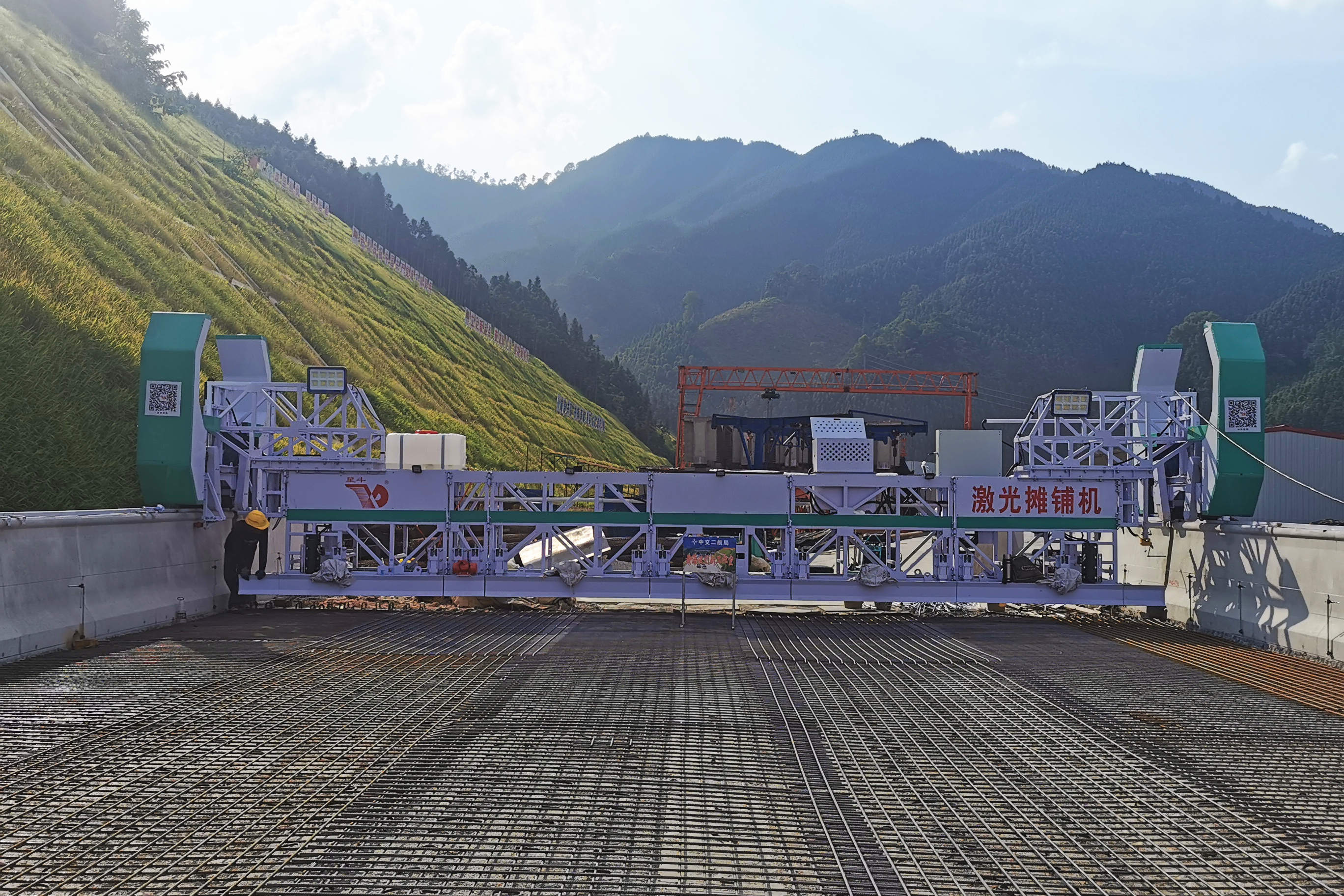 南天路以平安百年、品质工程为目标,积极推行机械化、智能性施工,充分发挥科技引领和技术创新优势,在桥面混凝土铺装施工中,项目部采用新型激光超声波高频振捣摊铺机,该摊铺机是以激光摊铺为基础增设超声波控制系统,实现双系统控制摊铺施工,与传统桥面铺装工装的相比,有了突破性的提升。