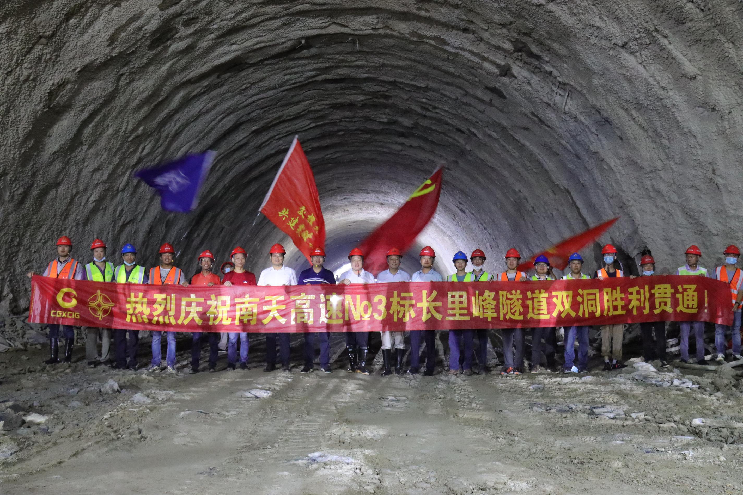 8月14日,由公司承建的南天高速3标长里峰隧道双幅胜利贯通,这是继检老坡隧道后,该标段第二座双幅贯通的隧道。