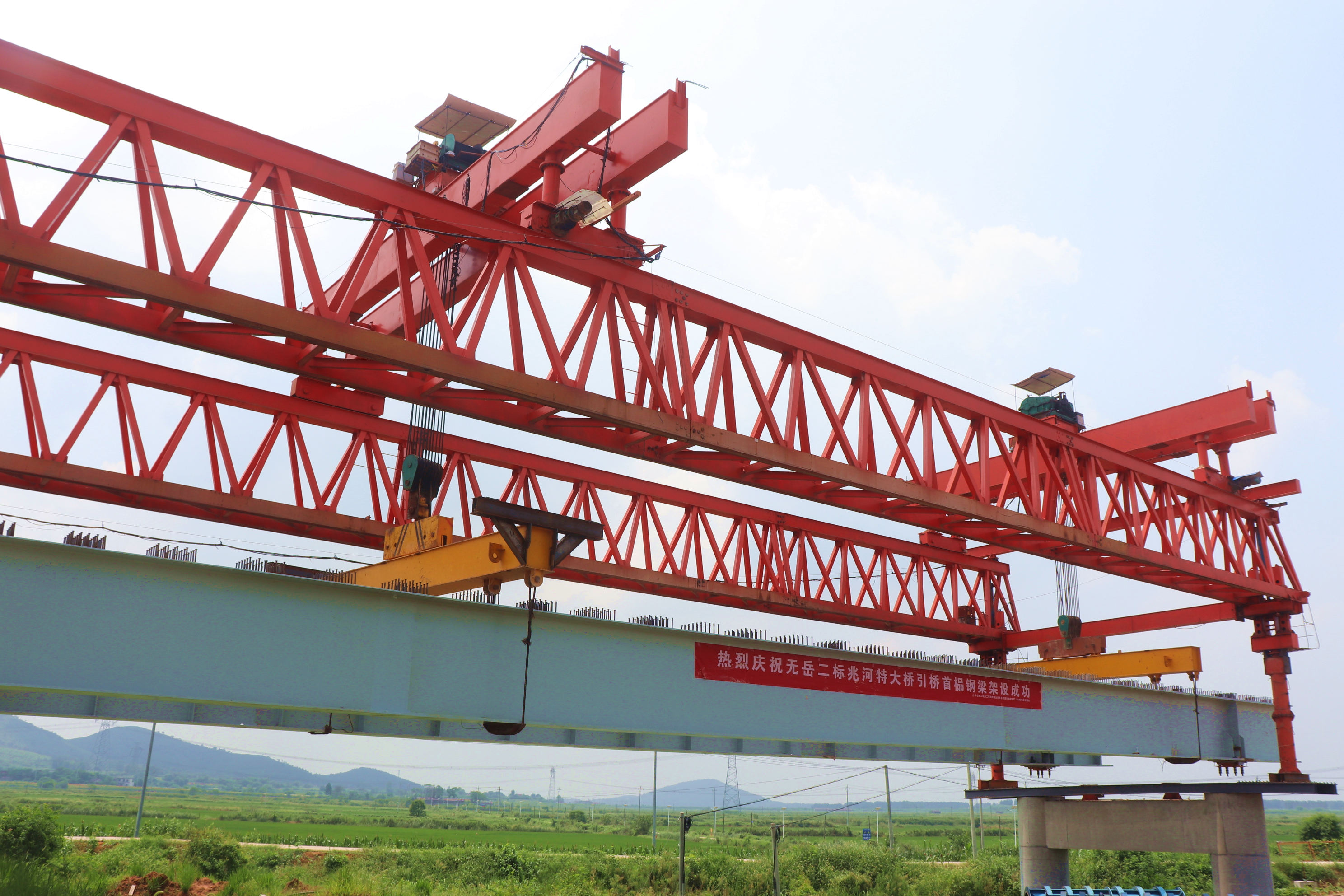 8月18日,无岳高速二标兆河特大桥引桥首榀钢板组合梁架设完成。标志着项目建设又迈出关键的一步,全面进入桥梁上部结构施工阶段。