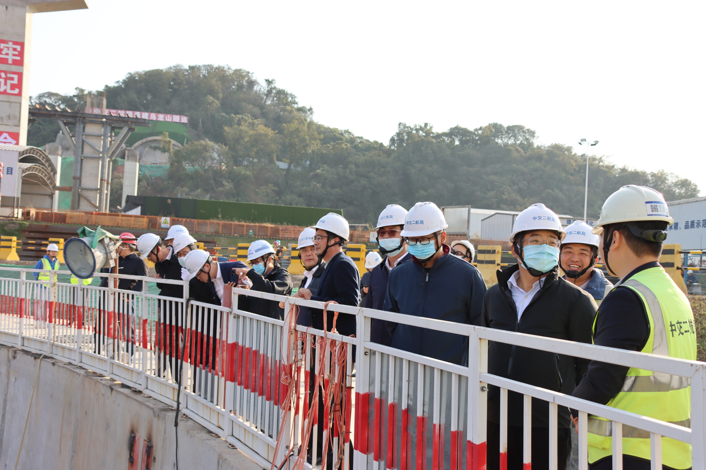 11月11日,中交集团长三角区域总部“攻坚克难我担责,党群共建保安全”活动领导小组和工作小组成员到南京仙新路过江通道项目观摩,中交二航局安全管理部总经理吕树胜等领导陪同。
