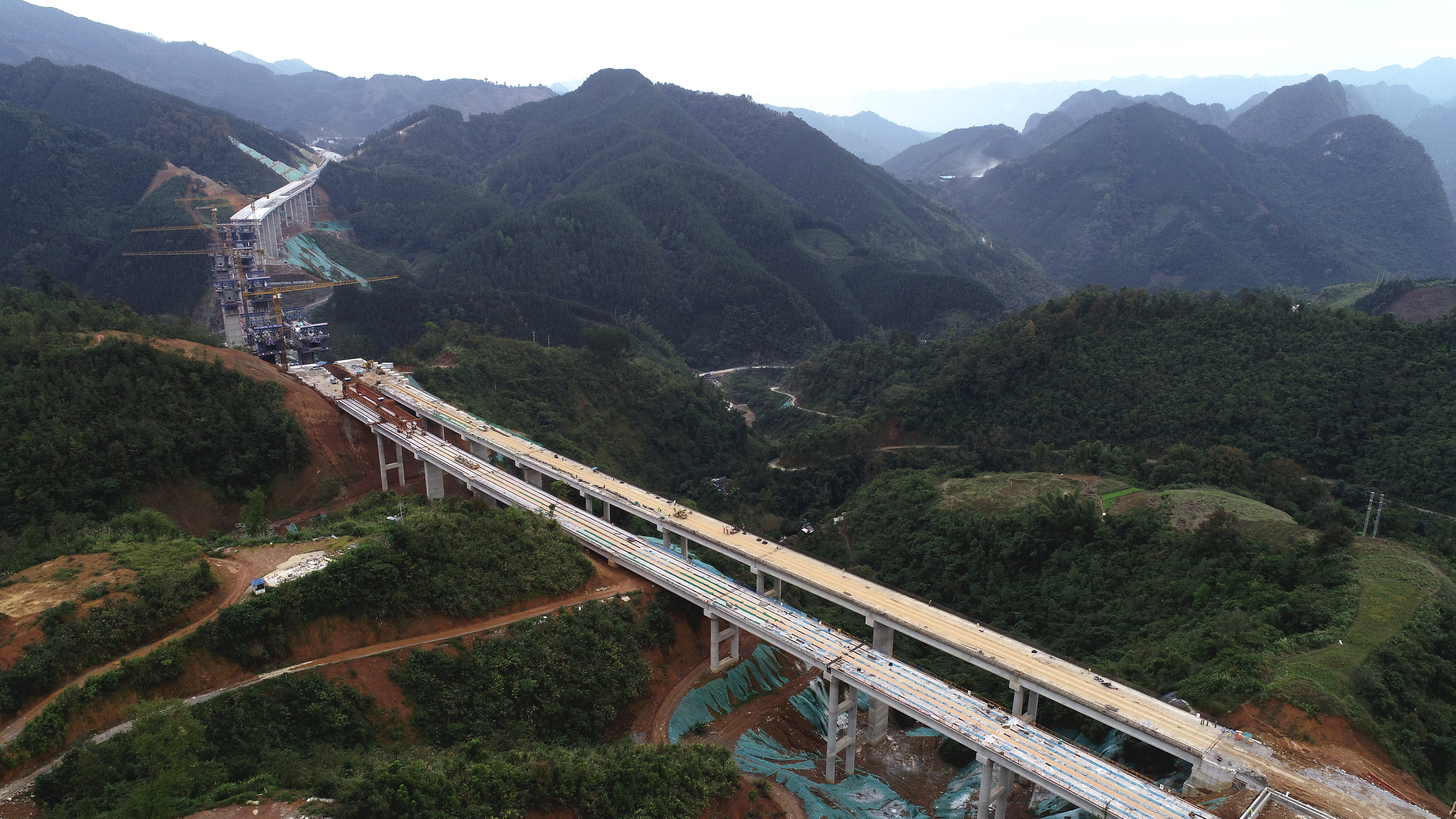 11月23日,伴随着最后一榀T梁的顺利架设,南天高速登里2号高架大桥实现全幅顺利贯通。