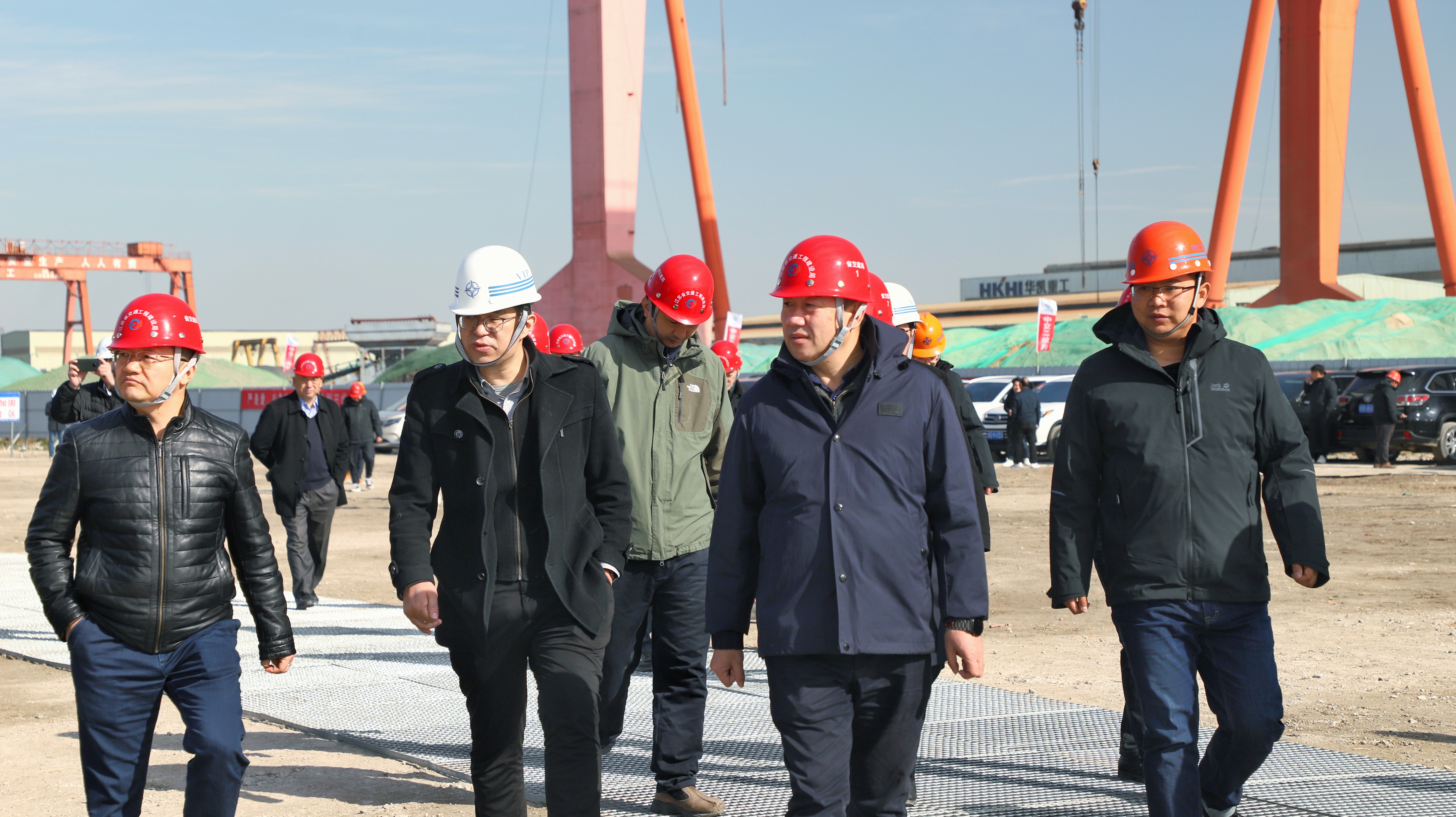 11月23日,江苏省交通运输厅党组成员、江苏省交通工程建设局党委书记、局长蒋振雄一行,到中交二航局施工的张靖皋长江大桥大临5标施工现场,进行实地调研。