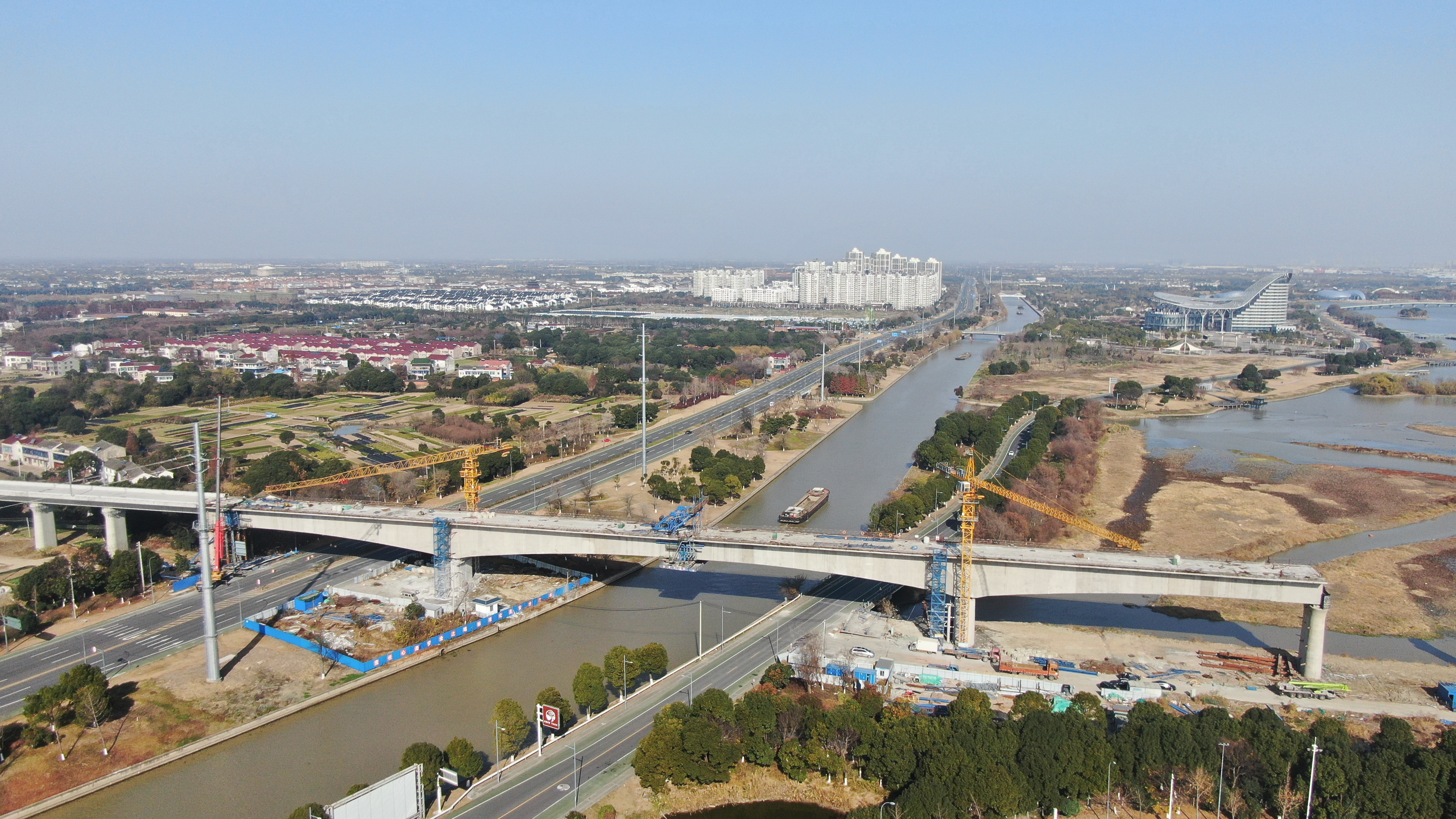 12月16日凌晨,南沿江铁路跨环湖西路连续梁顺利完成中跨合龙段浇筑,实现全桥合龙。至此,公司承建的南沿江铁路5标正线连续梁全部完成合龙。