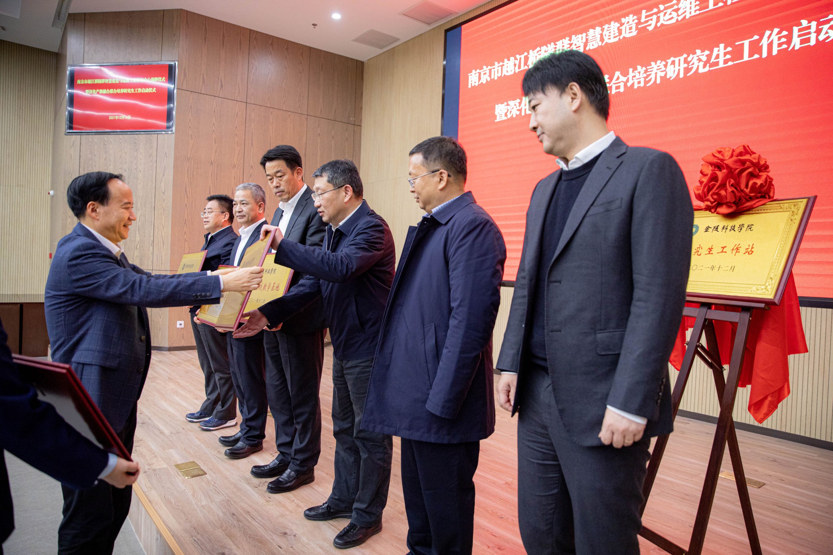 12月16日,南京越江桥隧群智慧建造与运维工程研究中心揭牌仪式暨金陵科技学院研究生实践培养基地启动仪式在南京市成功举行。南京市公建中心党组书记、主任武焕陵,金陵科技学院校长刘永彪,中交二航局党委副书记、总经理张鸿出席揭牌仪式。会上,中交二航局等六家企业被列为“金陵科技学院研究生实践培养基地”。