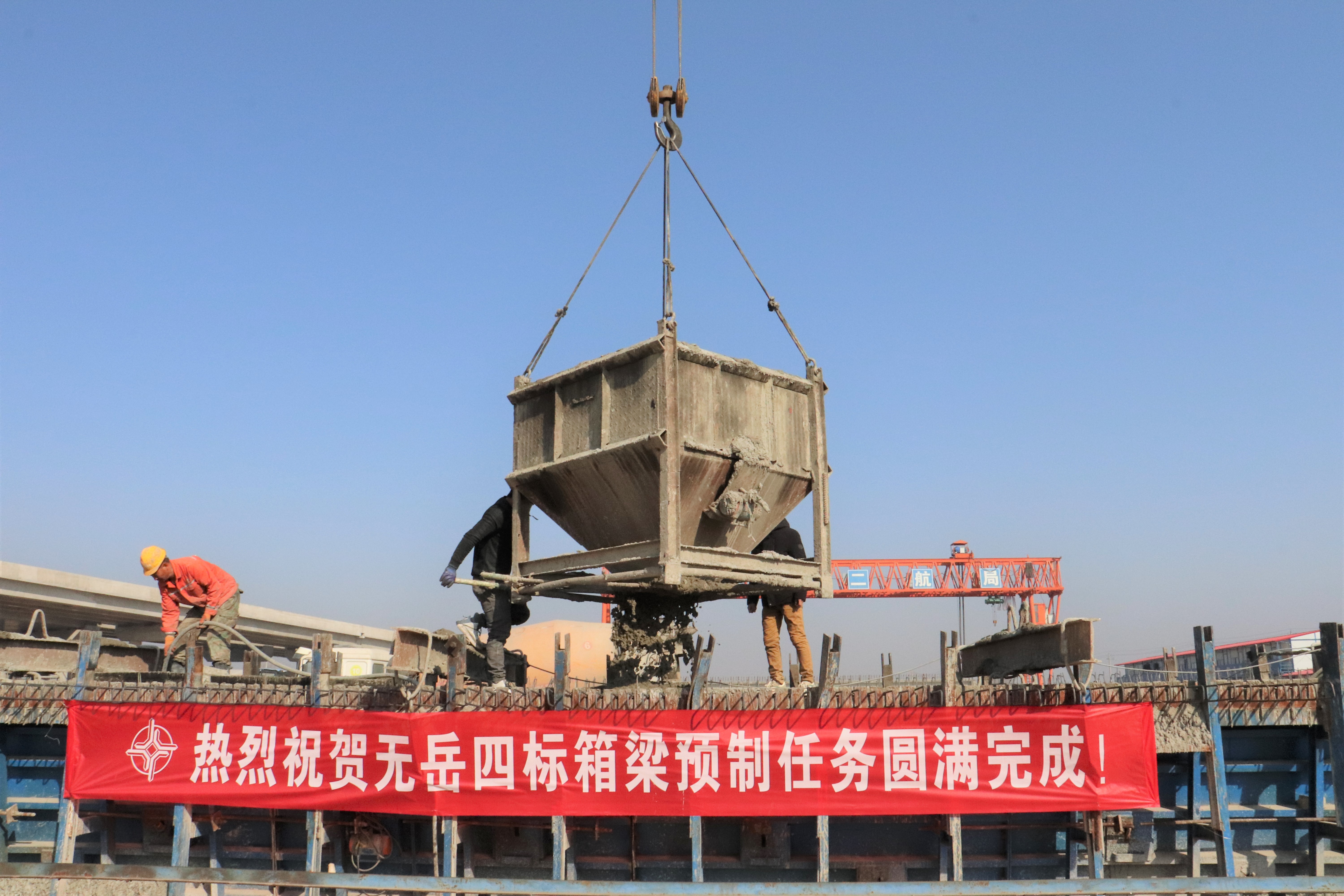12月21日,随着最后一方混凝土入模,无岳四标箱梁预制场最后一榀箱梁浇筑完成,标志着无岳四标箱梁预制任务圆满完成。