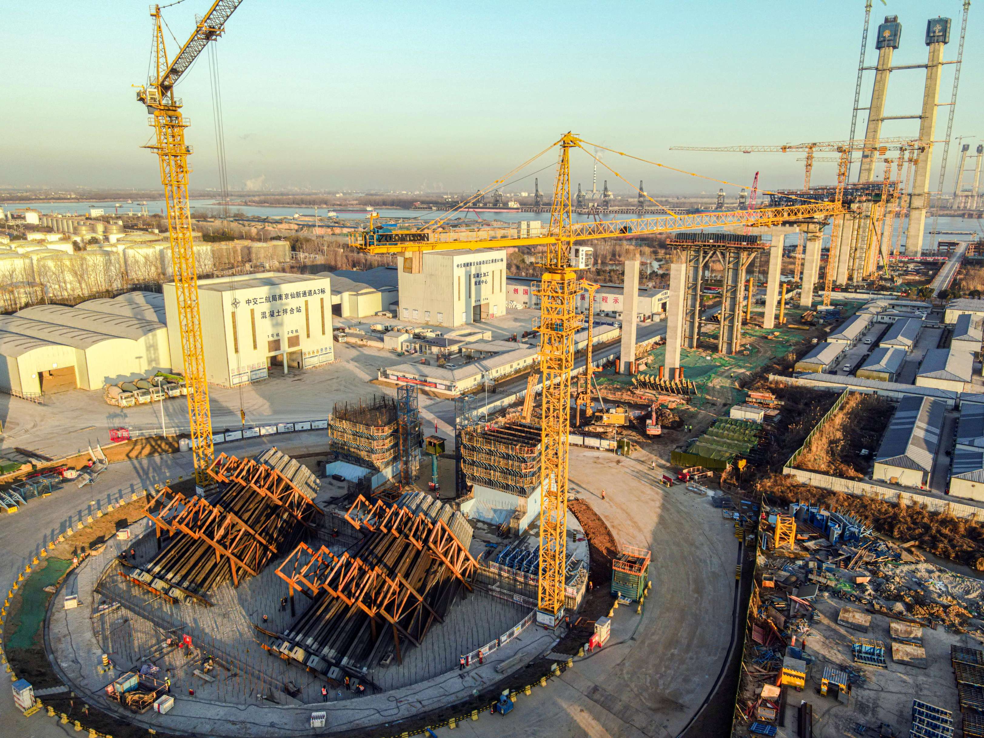 仙新路过江通道为国内最大跨度的悬索桥,主桥跨径1760米,是连接南京主城、经开区及江北新区的一条重要通道。其中南锚碇总重量超50万吨,通过锚固系统与主缆紧紧连接在一起,起到拉起整座大桥的作用。