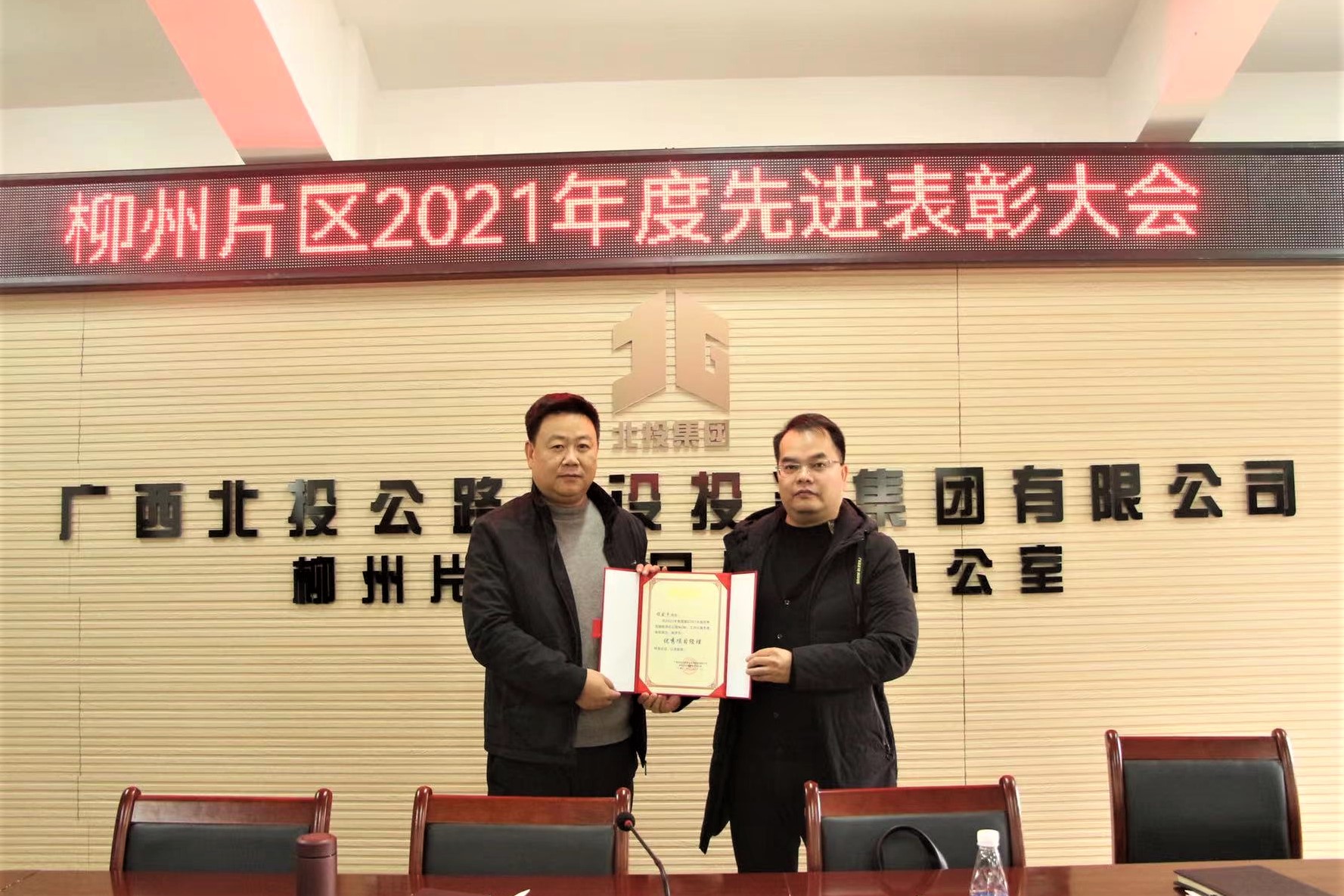 1月4日上午,广西北投公路投资建设集团有限公司柳州片区建设办,组织召开2021年度先进表彰大会。会上,公司国道G357福安路2标项目部获得优秀项目经理、优秀项目总工等10项荣誉称号。