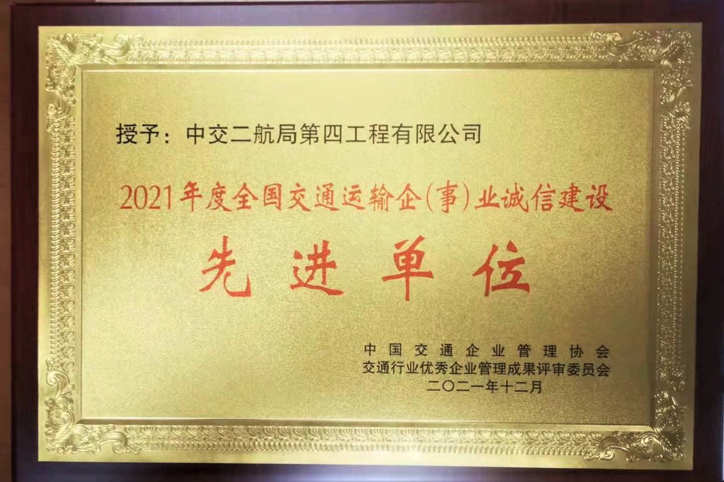 近日,中国交通企业管理协会公布了诚信建设先进单位评选结果,公司荣获2021年度全国交通运输企(事)业诚信建设先进单位荣誉称号。