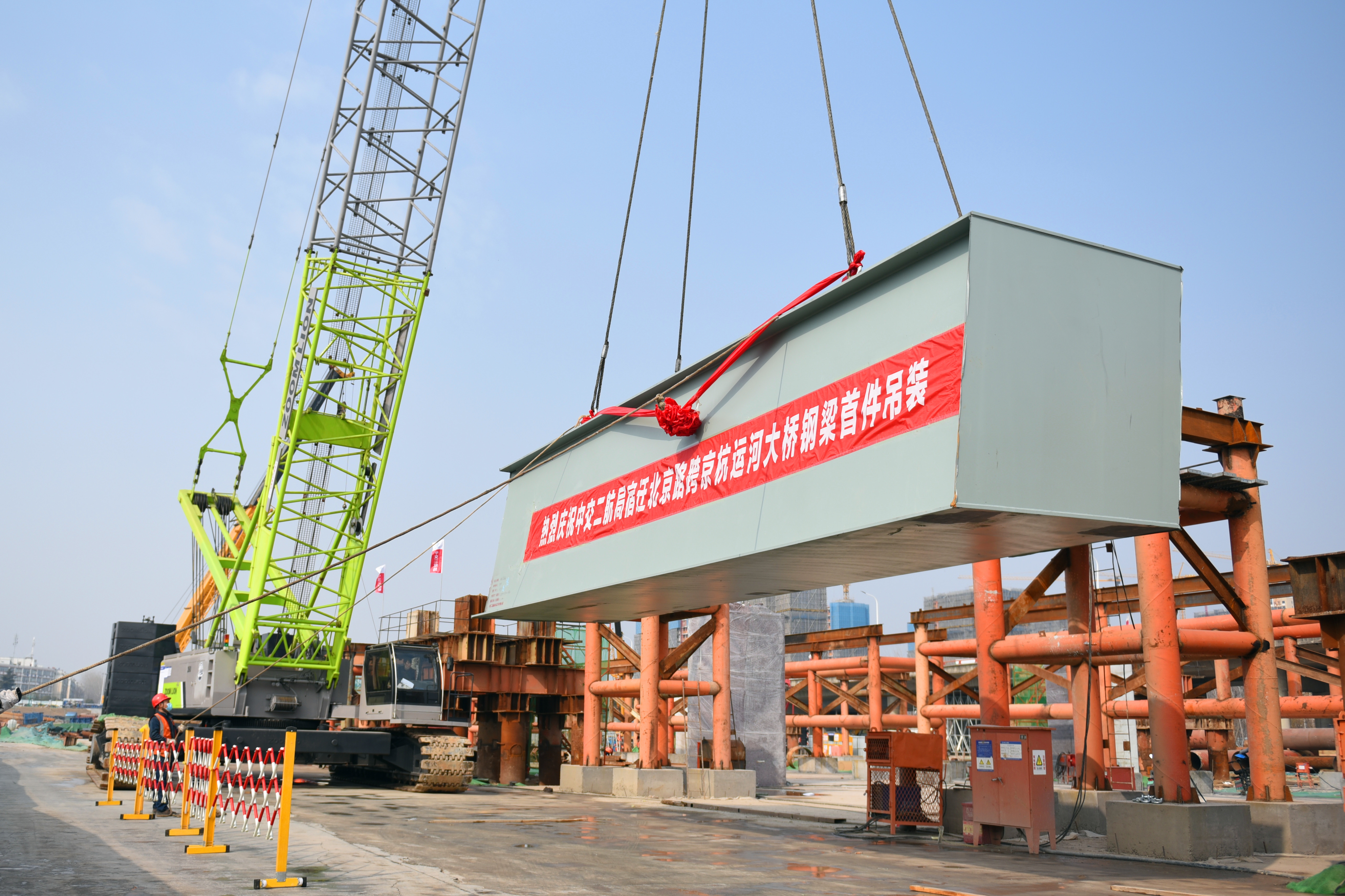 3月1日,宿迁北京路快速化改造工程项目迎来突破性节点,项目关键线路跨京杭运河特大桥首节钢梁顺利完成吊装,标志着大桥正式进入上部结构施工阶段。