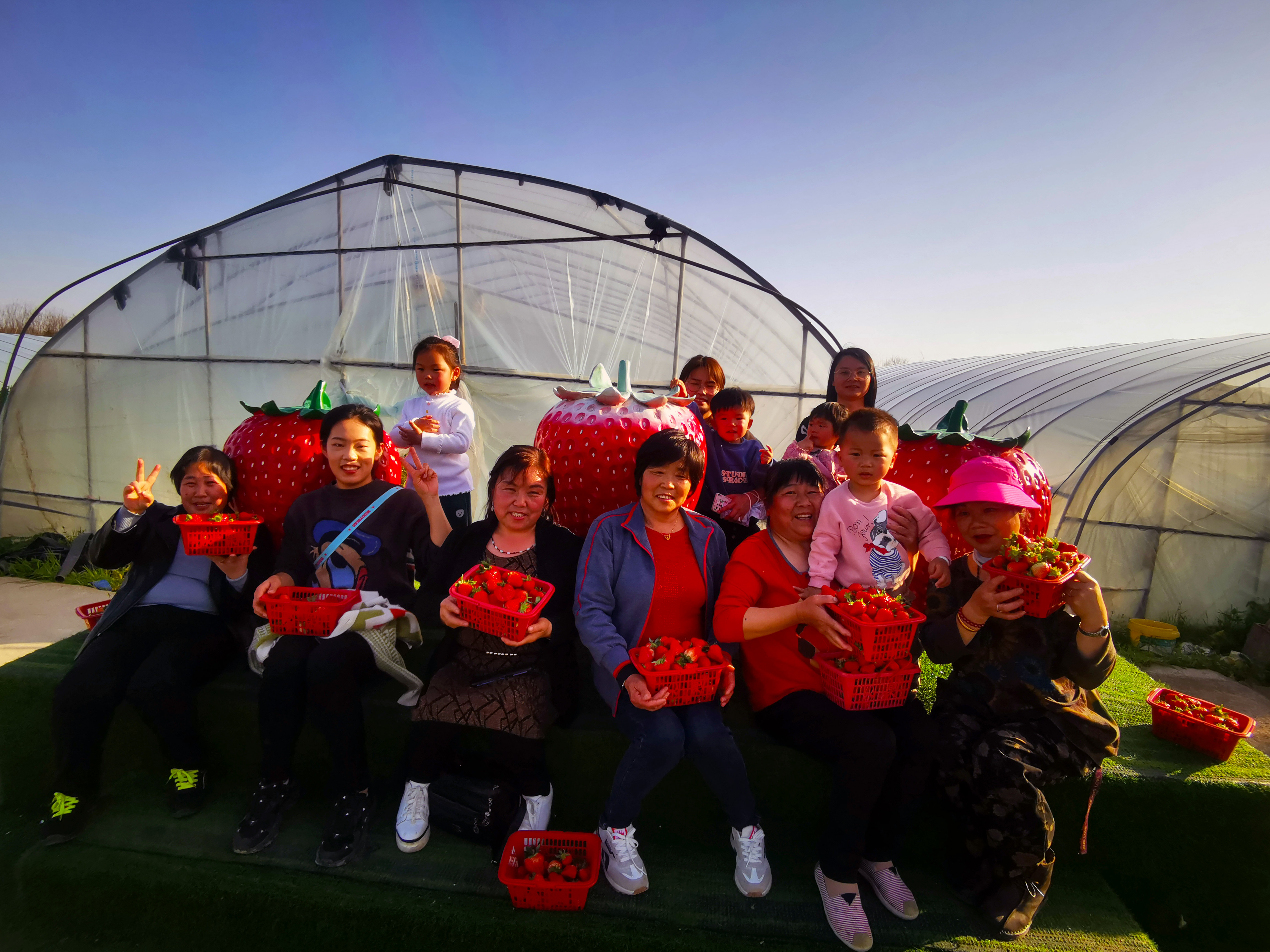 走出梅林,眼前是一片草莓大棚,隆起的土堆,一排排肥厚的叶片下,藏着鲜红圆润的草莓。眼尖儿的女神采摘到又大又红的草莓后,总爱兴奋地和身边的姐妹分享,引起大家的艳羡;然而当看到身边姐妹筐内稀疏的果实,更乐于分享自己筐内最大最好的草莓。当一个个草莓落入女神们的箩筐,甜香漫过鼻息也漫进大家的心里。