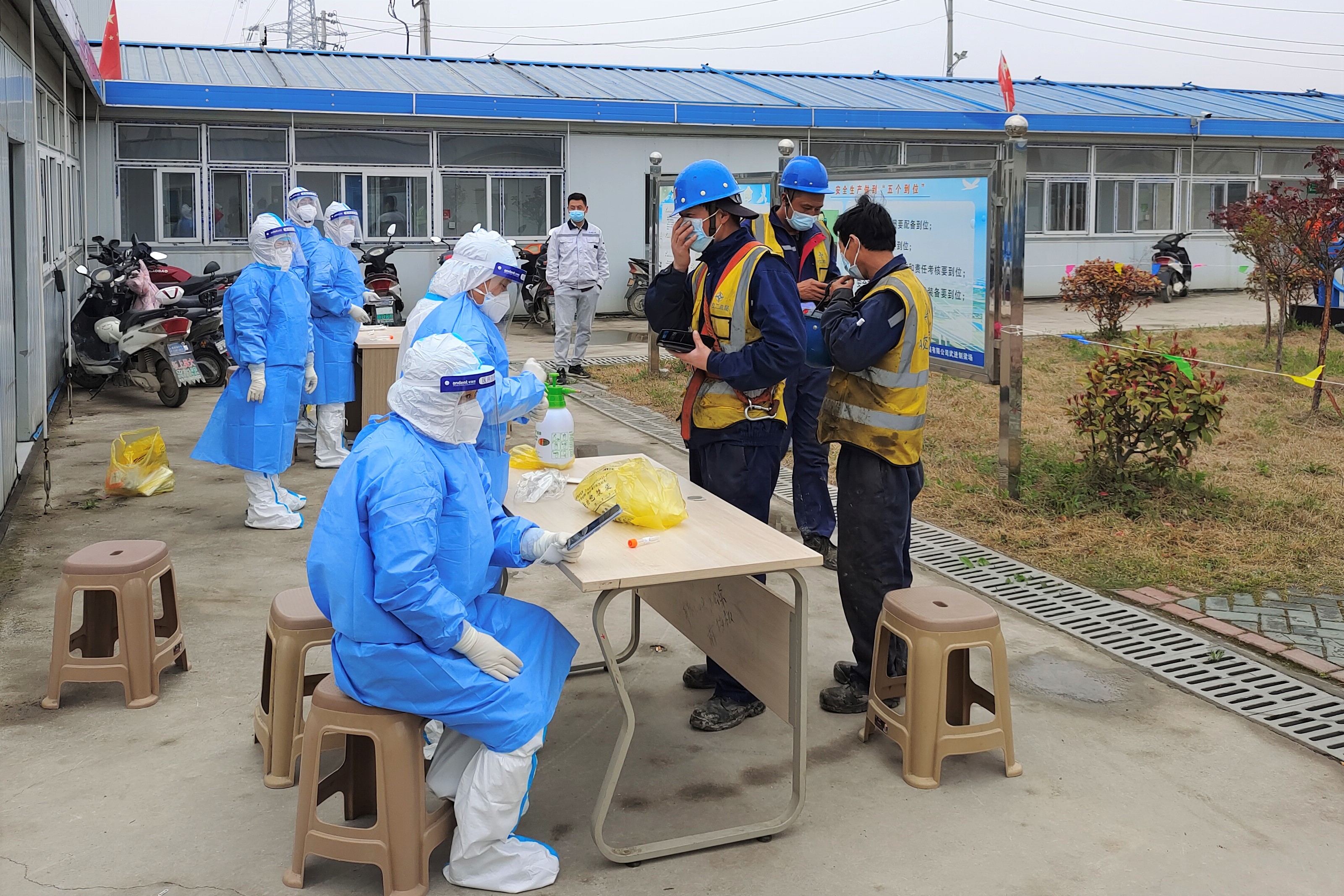 此外,在武进区南河社区疫情防控志愿者招募通知发布后,公司南沿江项目居住在社区的陶传盛、桑梦业等5名员工积极加入,协助医务人员进行采样工作,维持现场秩序