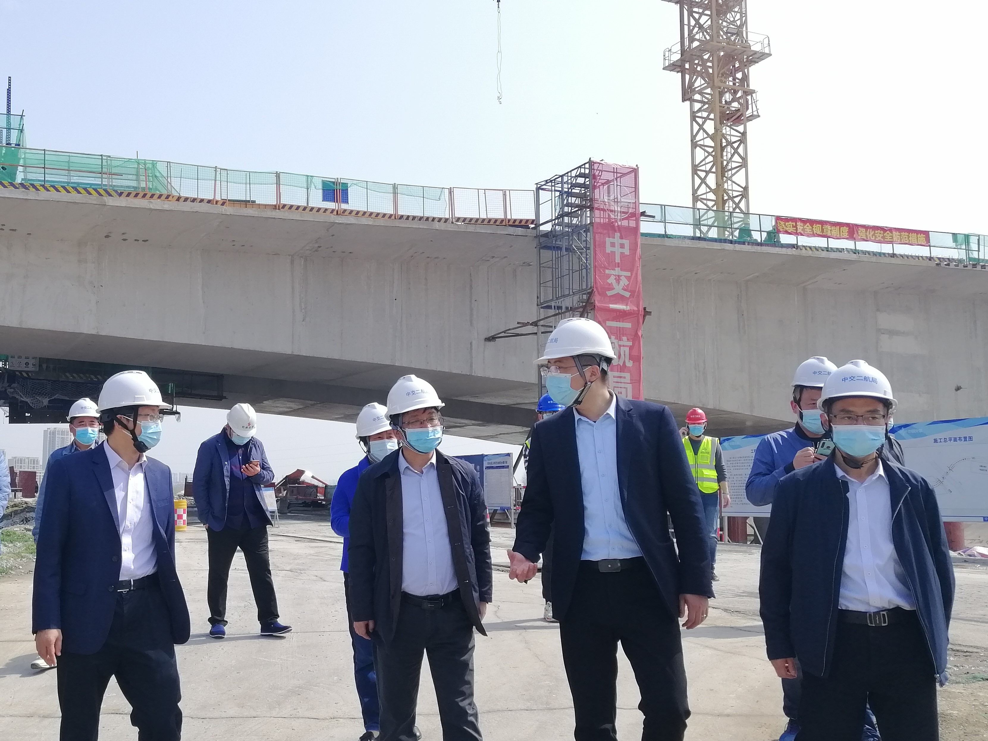 3月30日上午,芜湖市委副书记、政法委书记张庆亮一行到鸠江南路项目视察工作,市重点工程管理处党组书记吴永生、副主任陈明陪同。