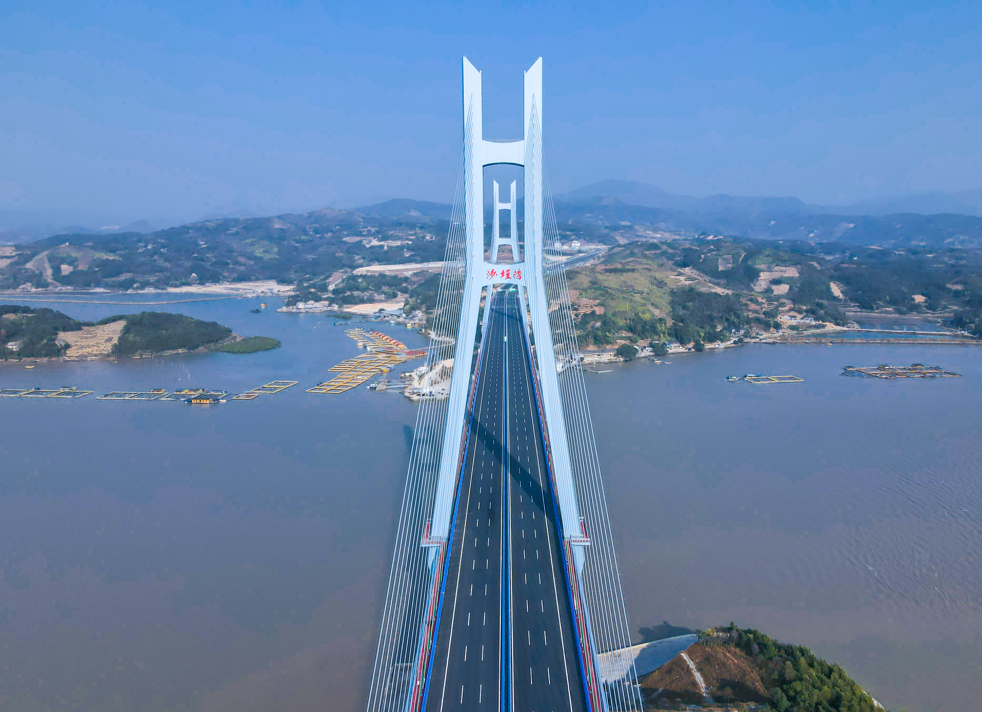 全线共划分为7个标段,其中公司承建的A3合同段沙埕湾跨海大桥是全线的控制性工程。大桥采用“一跨过江”式设计,避免了对沙埕湾海域的干扰,全长2054米,总造价10.36亿元,主桥采用单侧不对称混合梁双塔斜拉桥,大桥还在两侧增设了1.5米宽人行道,扩展“交通+旅游”功能。